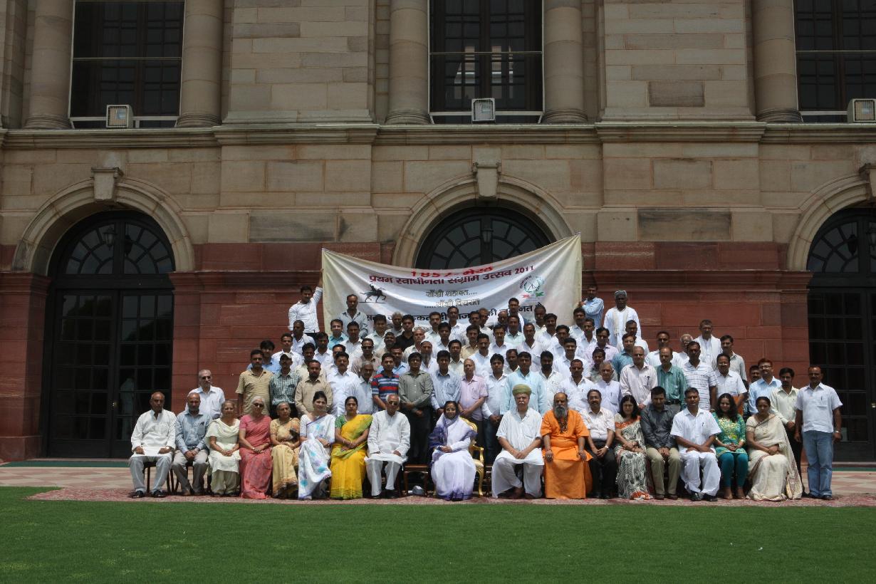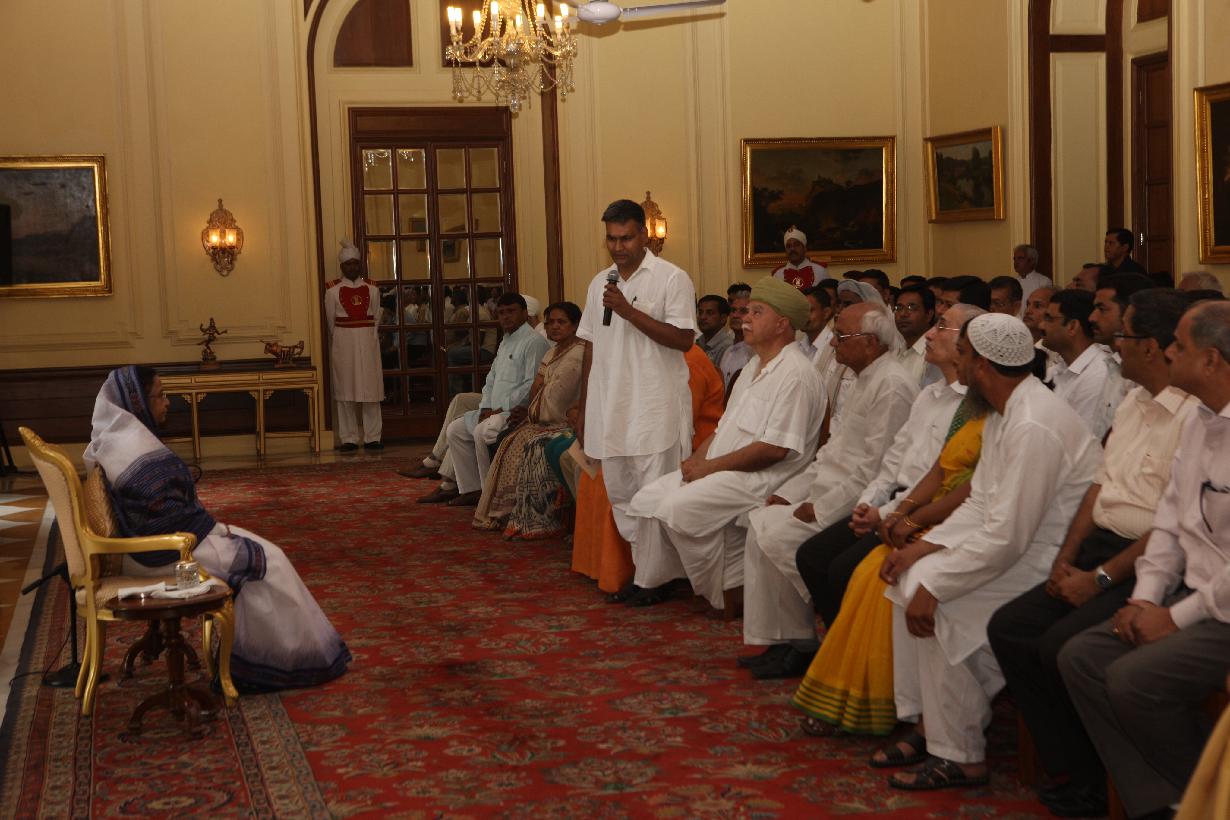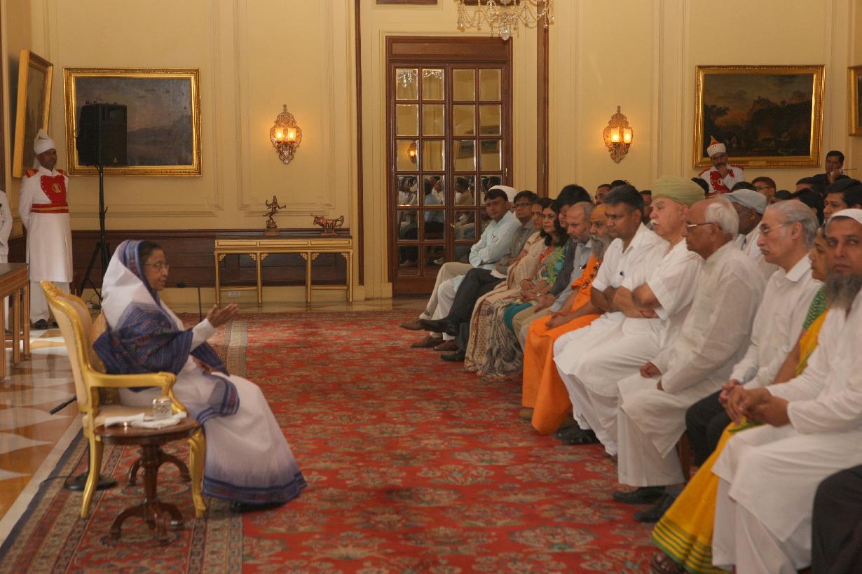 | Caption: | The President of India, Smt Pratibha Devisingh Patil interacting with the Delegation from Somashram Darul - Aman Trust from Meerut at Rashtrapati Bhavan in New Delhi on June 18, 2011 |