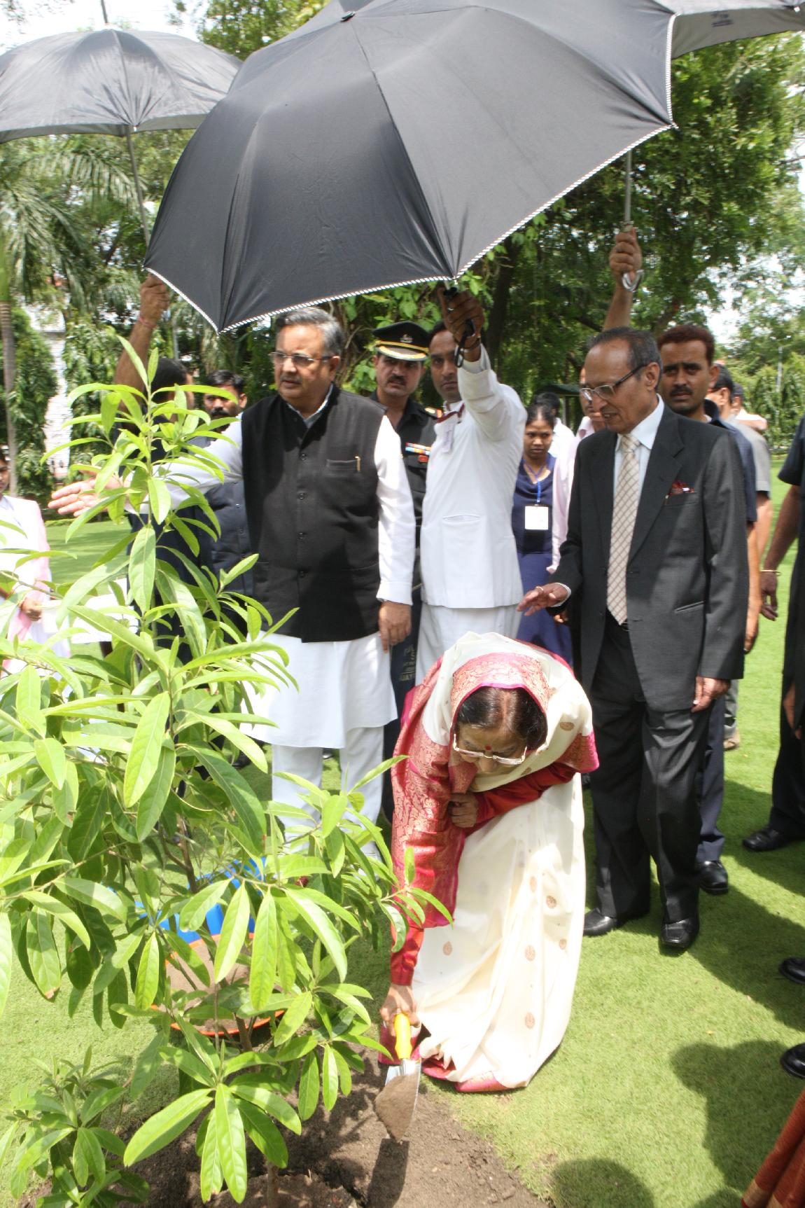 | Caption: | The President of India, Smt Pratibha Devisingh Patil planting a Sapling at Raj Bhavan in Chhattisgarh on June 24, 2011 |