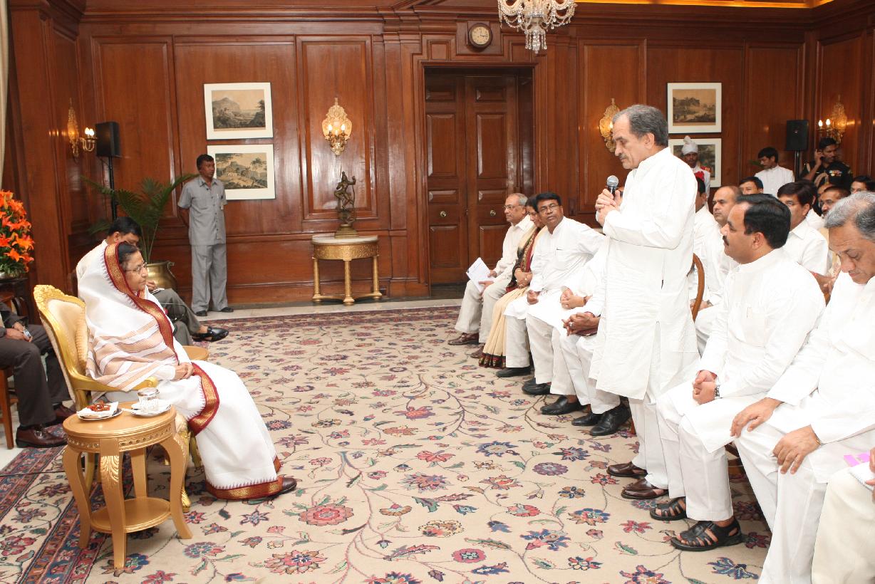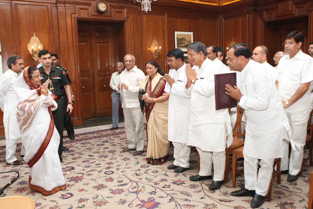 | Caption: | The President of India, Smt Pratibha Devisingh Patil interacting with the Delegation from Uttarakhand Pradesh Congress Committee at Rashtrapati Bhavan in New Delhi on June 02, 2011 |