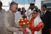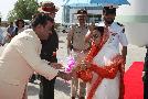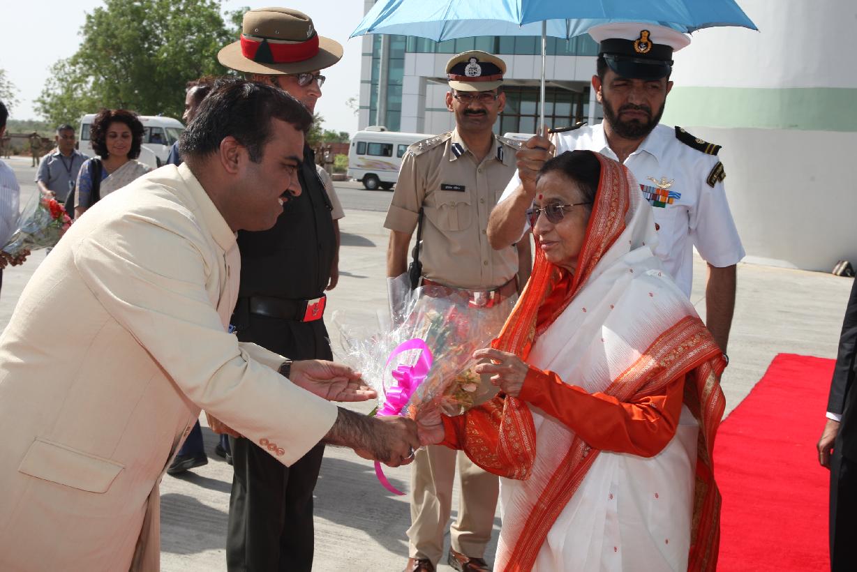 | Caption: | The President of India, Smt Pratibha Devisingh Patil being welcomed by the Governor of Rajasthan, Shri Shivraj Patil at Kankroli in Rajasthan on May 12, 2011 |