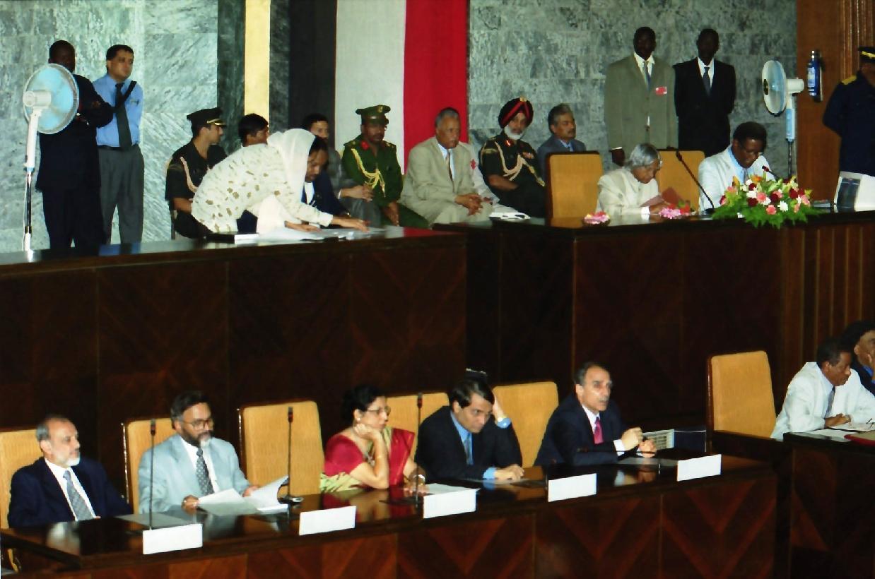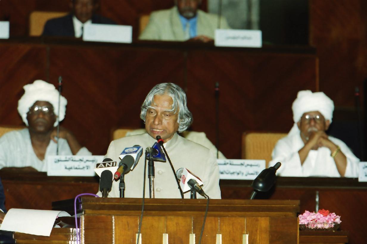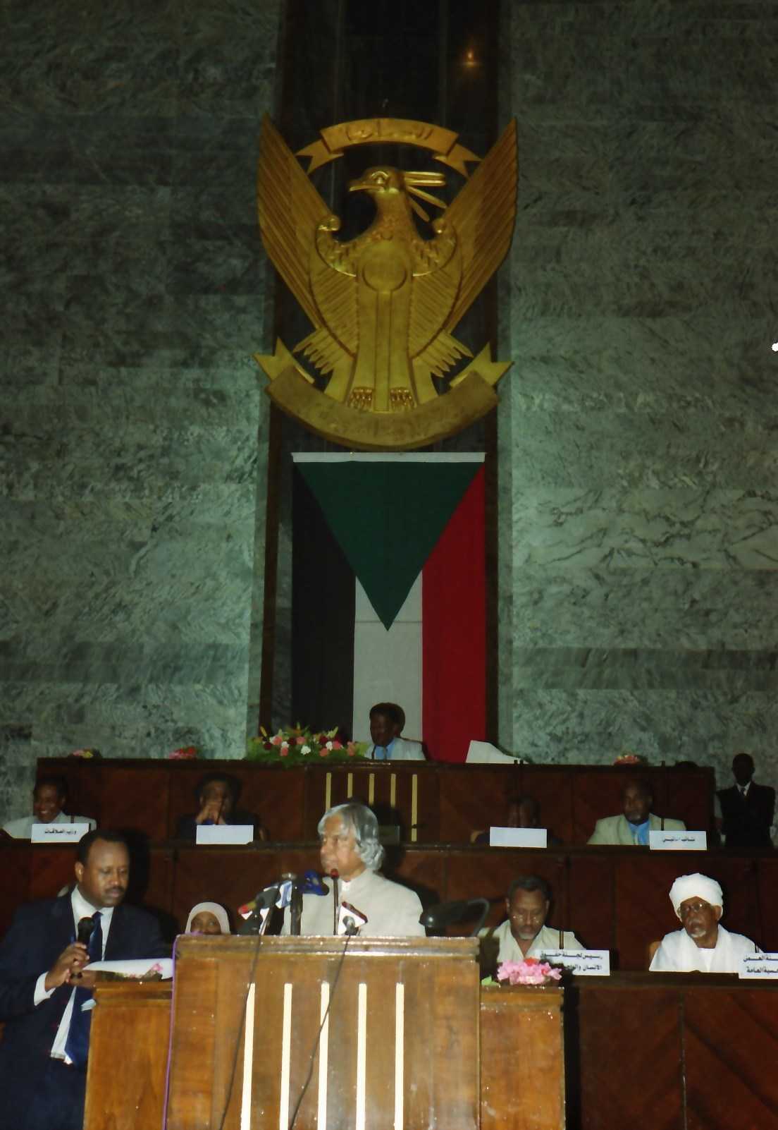 | Caption: | The President of India, Dr A P J Abdul Kalam addressing at the Sudan National Assembly at Khartoum in Sudan on Oct 21, 2003 |