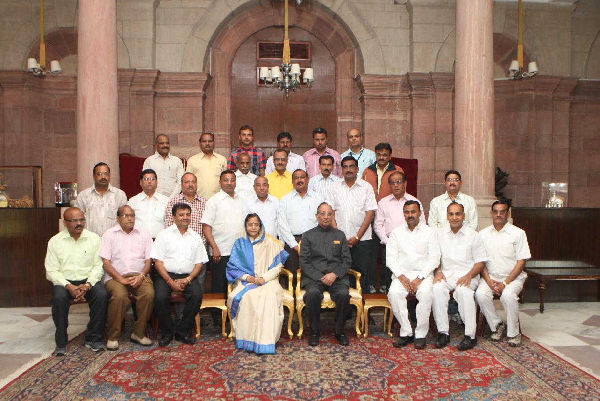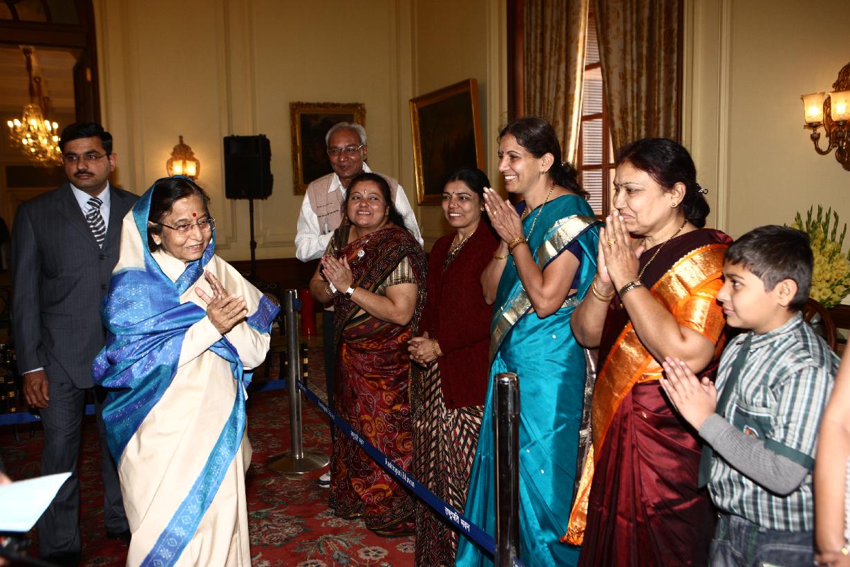 | Caption: | The President of India, Smt Pratibha Devisingh Patil interacting with the Delegation from Shri Neelkanth Vyayam Mandal, Amravati at Rashtrapati Bhavan in New Delhi on Jan 12, 2012 |