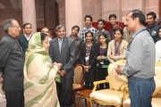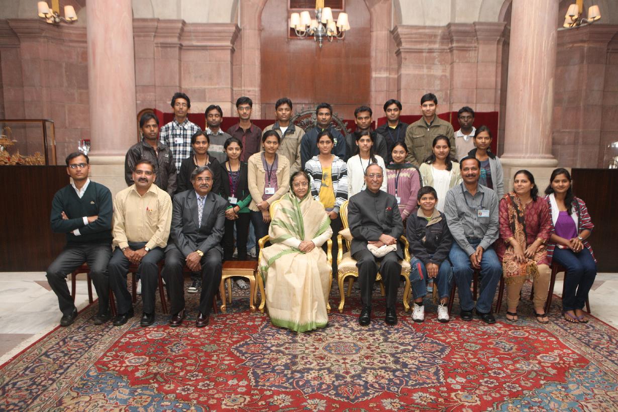 | Caption: | The President of India, Smt Pratibha Devisingh Patil interacting with the Students from Vidya Bharati College Amravati at Rashtrapati Bhavan in New Delhi on Jan 05, 2012 |