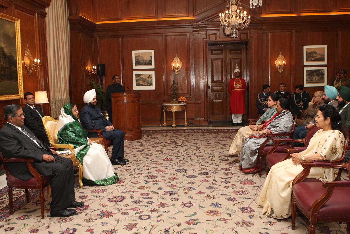 | Caption: | The President of India, Smt Pratibha Devisingh Patil receiving a copy of the Book 'Reflections from the Tranquil Land and Beyond' from the Lt Governor of Puducherry, Dr Iqbal Singh at Rashtrapati Bhavan in New Delhi on Feb 03, 2011 |
