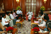 | Caption: | The Farmers from Village of 24 Parganas District West Bengal and Officials of Bharat Chamber of Commerce Kolkata calling on the President of India, Dr A P J Abdul Kalam at the Committee Room of Rashtrapati Bhavan in New Delhi on March 19, 2004 |