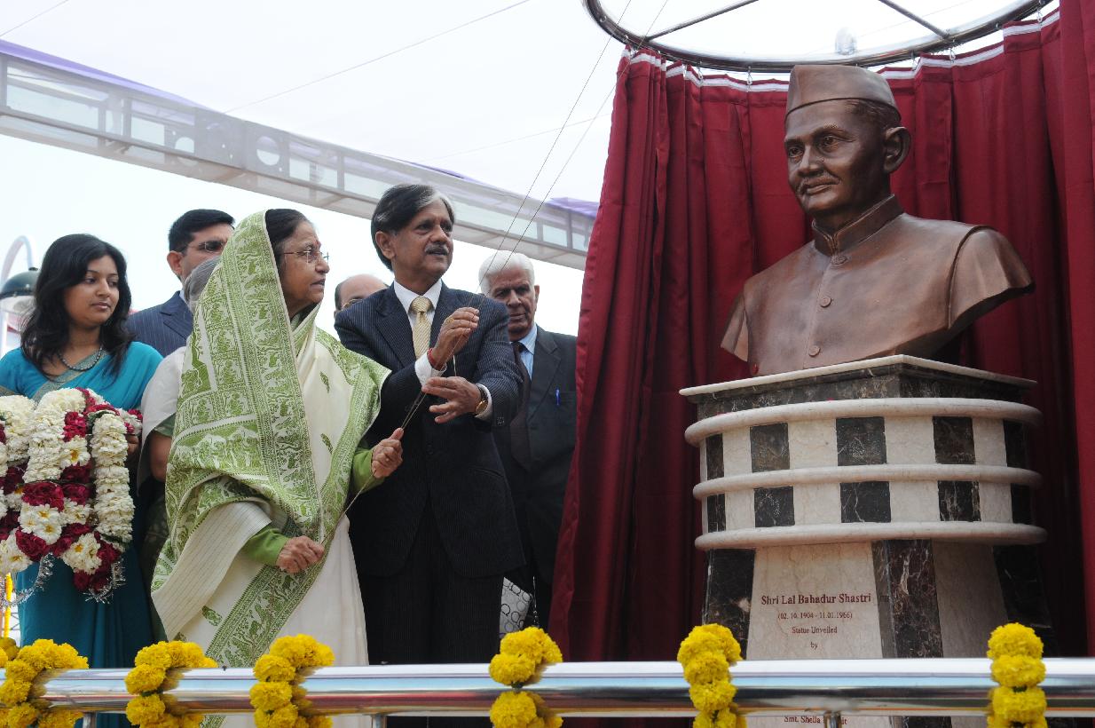 | Caption: | The President of India, Smt Pratibha Devisingh Patil unveiling the Statue of Shri Lal Bahadur Shastri during the inauguration of the New Building of the Lal Bahadur Shastri Institute of Management at Dwarka in New Delhi on Feb 23, 2011 |