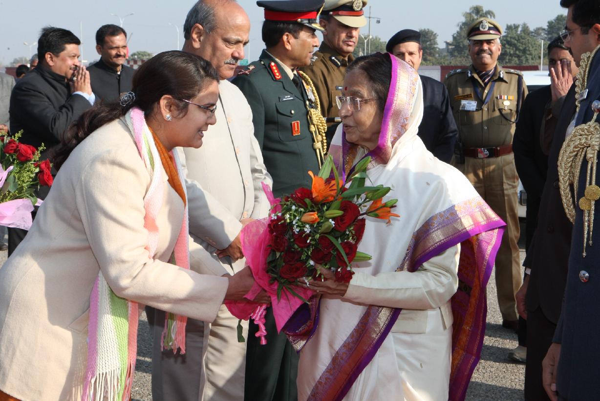 | Caption: | The President of India, Smt Pratibha Devisingh Patil before departure from Jaipur Airport in Rajasthan on Jan 10,2012 |