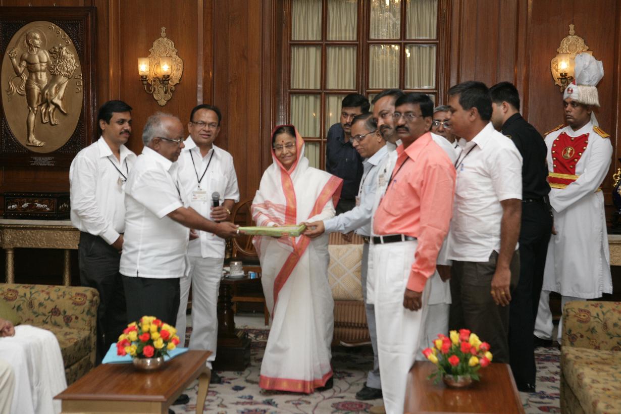 | Caption: | The President of India, Smt Pratibha Devisingh Patil interacting with Shri Ashok Bhatia and others at Rashtrapati Bhavan in New Delhi on July 29, 2009 |