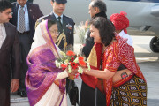 | Caption: | The President of India, Smt Pratibha Devisingh Patil being welcomed by the Chief Minister of Rajasthan, Shri Ashok Gehlot at Udaipur Airport in Rajasthan on Jan 10, 2012 |