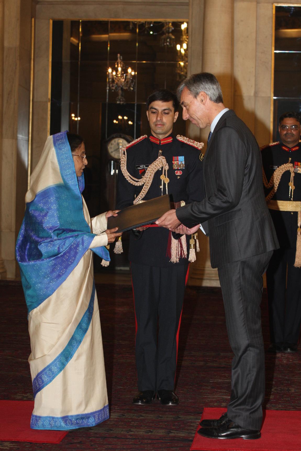 | Caption: | The Ambassador of the European Union, HE Mr Joao Gomes Cravinho presenting his Credentials to the President of India, Smt Pratibha Devisingh Patil at Rashtrapati Bhavan in New Delhi on Jan 12, 2012 |