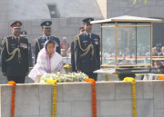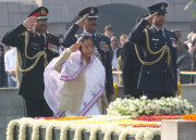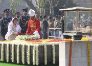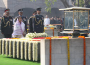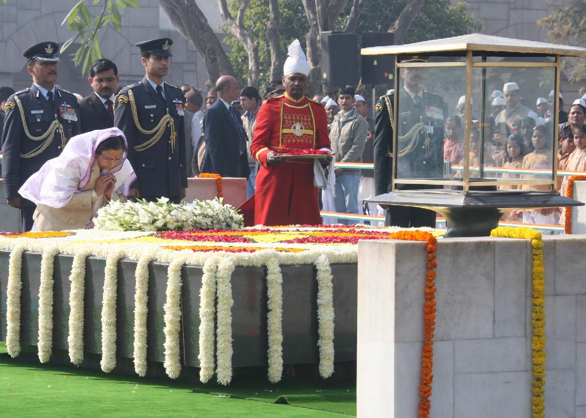 | Caption: | The President of India, Smt Pratibha Devisingh Patil paying homage at the Samadhi of the Father of the Nation, Mahatma Gandhi on the occasion of his 64th Death Anniversary at RajGhat in New Delhi on Jan 30, 2012 |