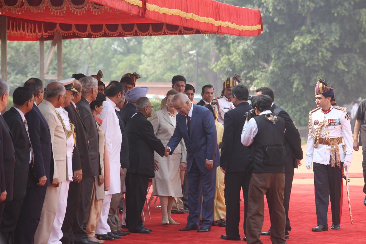 | Caption: | The President of India, Smt Pratibha Devisingh Patil at the Ceremonial Reception of the President of the Republic of Uzbekistan, HE Mr Islam Karimov at Forecourt of Rashtrapati Bhavan in New Delhi on May 18, 2011 |
