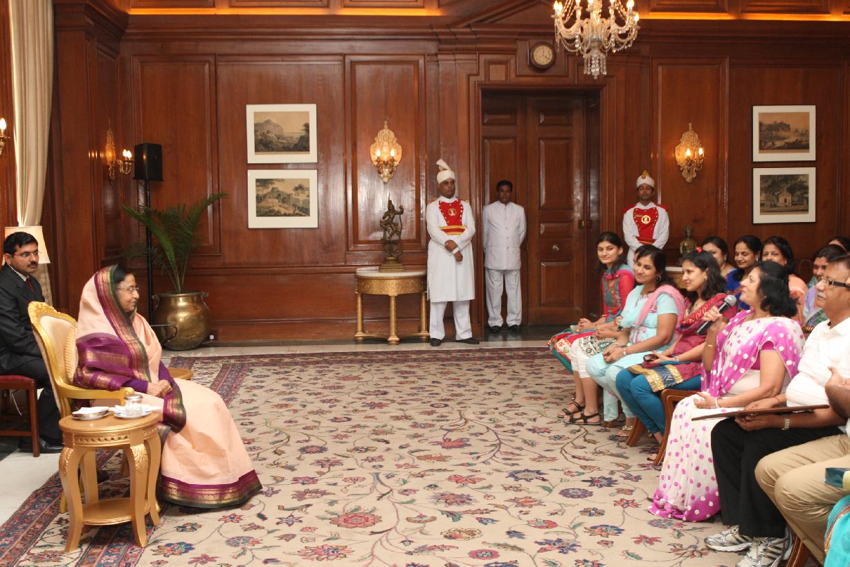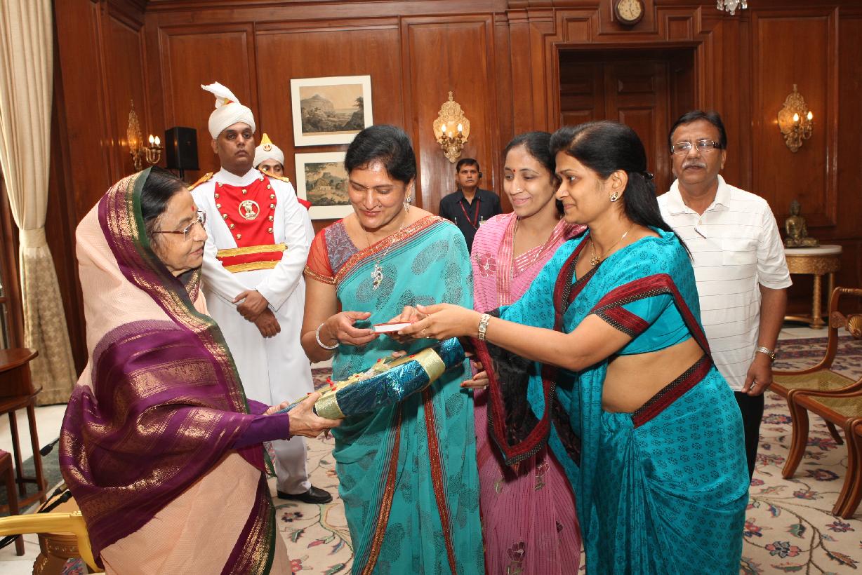 | Caption: | The President of India, Smt Pratibha Devisingh Patil interacting with Smt Padma Gattai and others from Amravati at Rashtrapati Bhavan in New Delhi on May 04, 2011 |