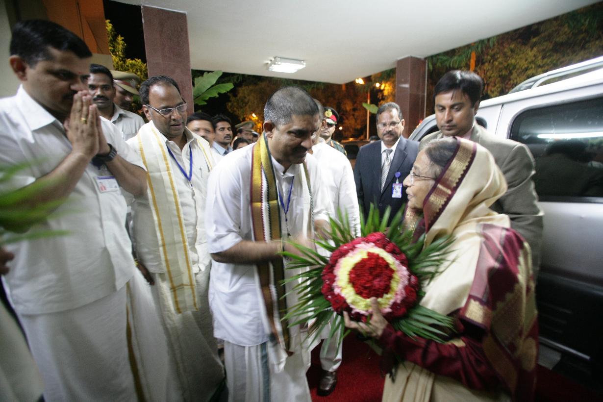 | Caption: | The President of India, Smt Pratibha Devisingh Patil arriving Padmavathi Guest House at Tirupati in Andhra Pradesh on July 06, 2011 |