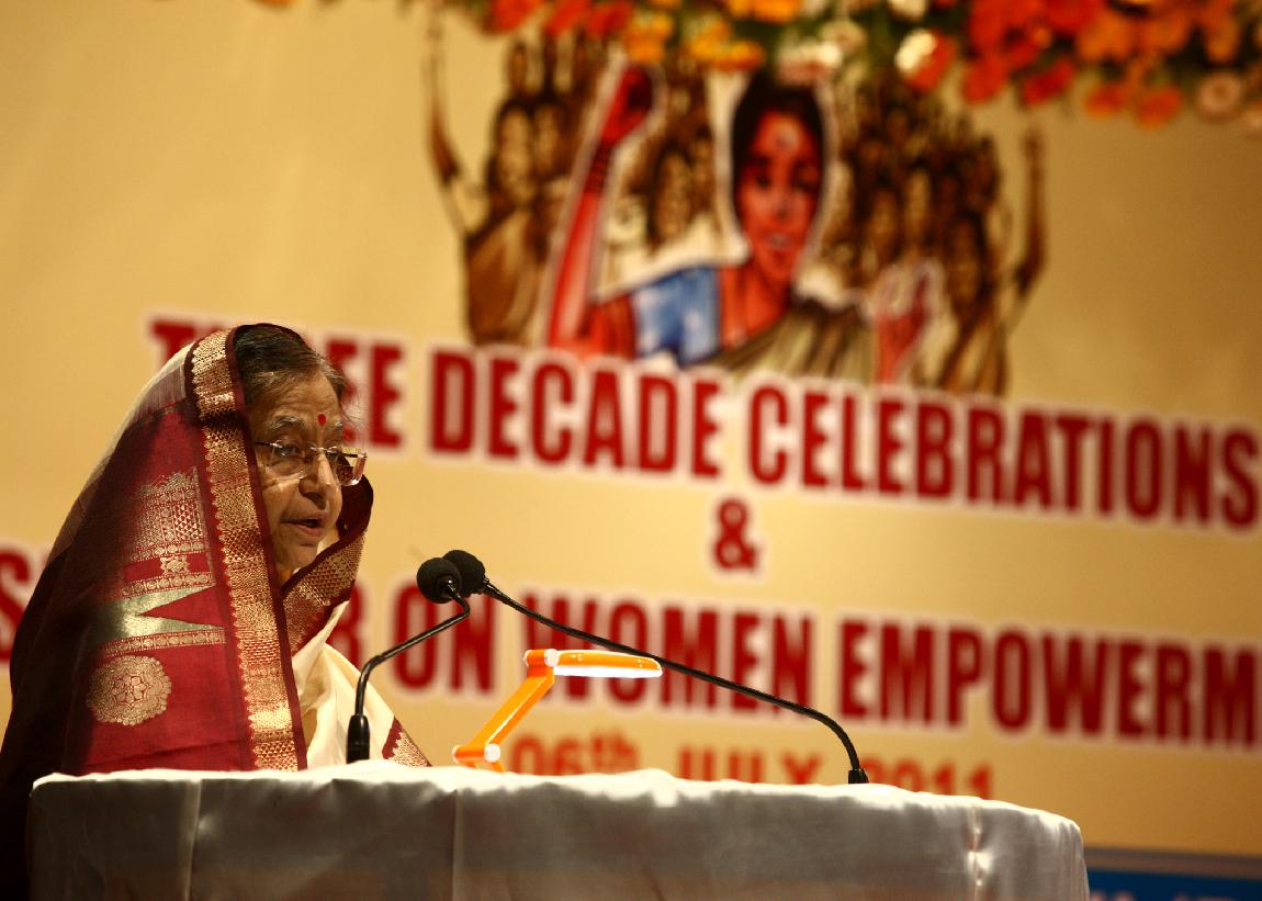 | Caption: | The President of India, Smt Pratibha Devisingh Patil during the Seminar on 'Women Empowerment' at Renigunta in Andhra Pradesh on July 06, 2011 |