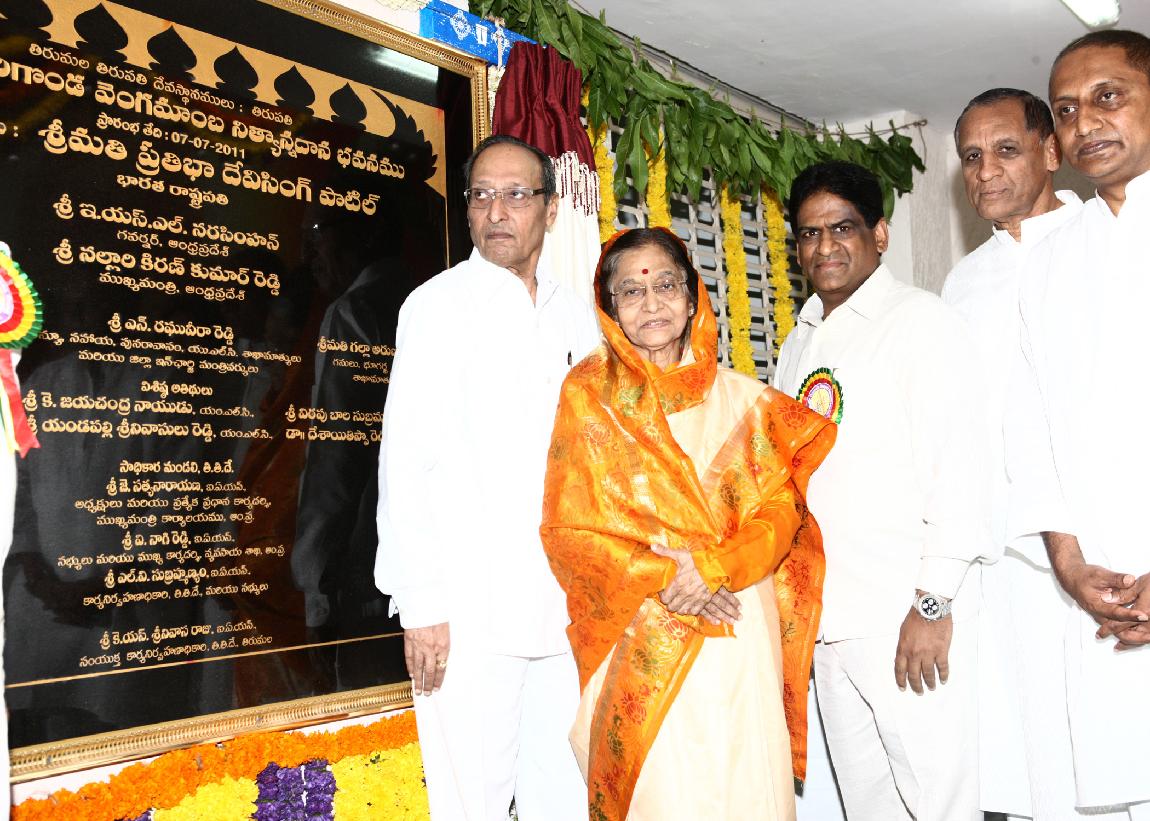 | Caption: | The President of India, Smt Pratibha Devisingh Patil inaugurating the Modern Annadanam Complex at Tirupati in Andhra Pradesh on July 07, 2011 |