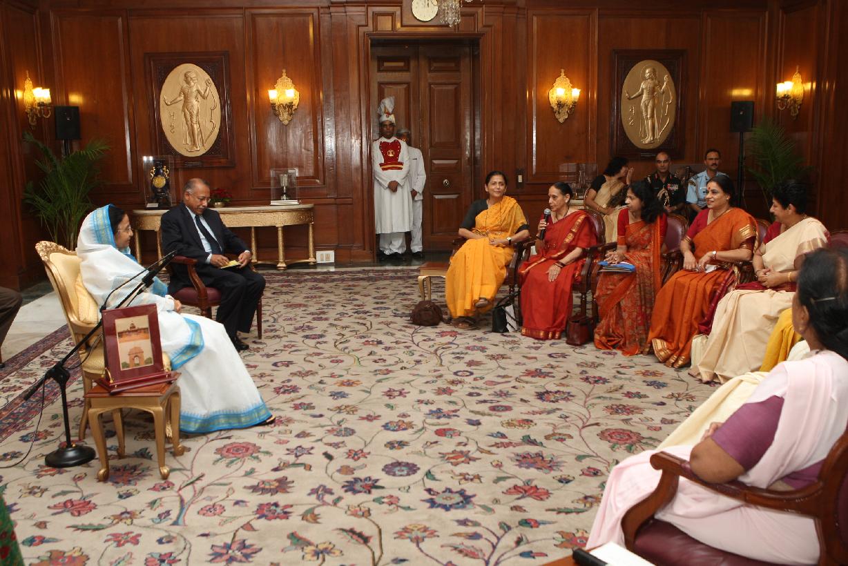 | Caption: | The President of India, Smt Pratibha Devisingh Patil interacting with a Group of Eminent Women at Yellow Drawing Room of Rashtrapati Bhavan in New Delhi on July 24, 2008 |