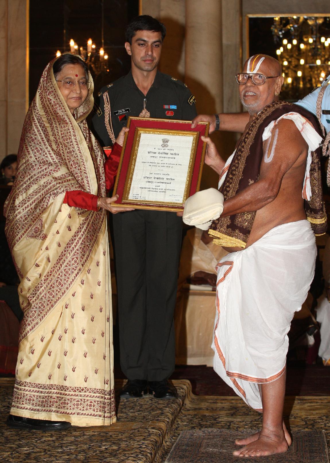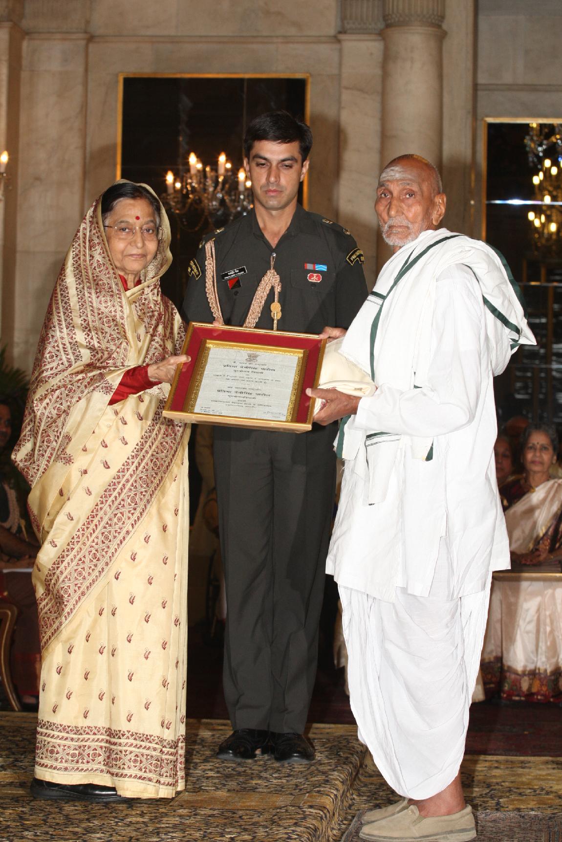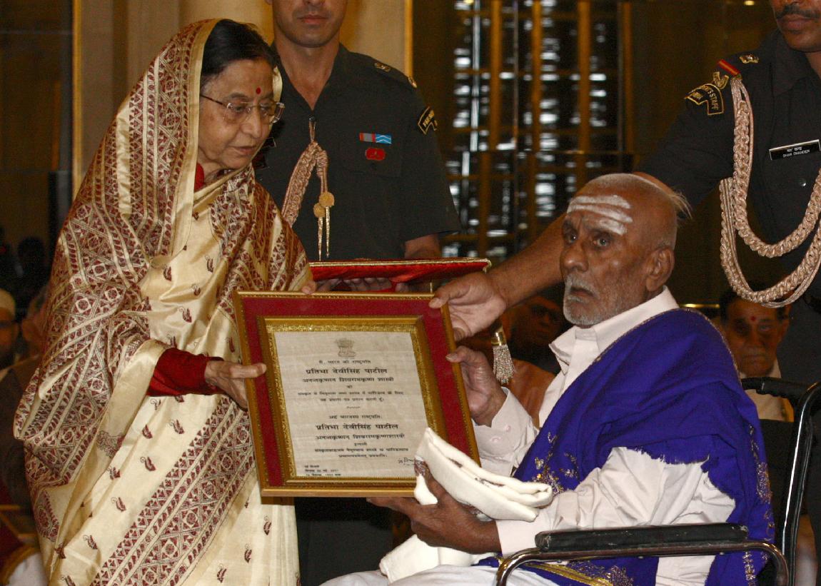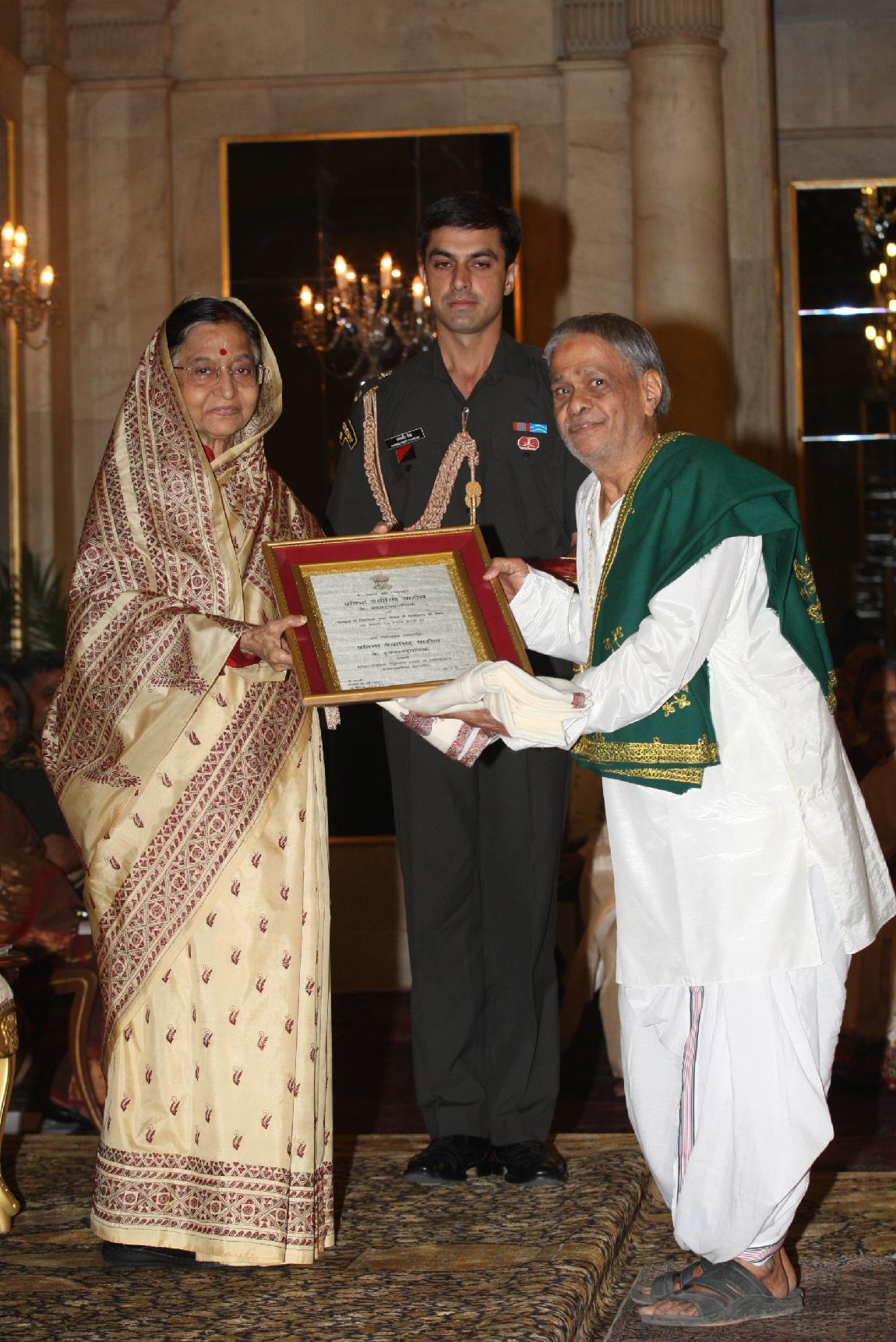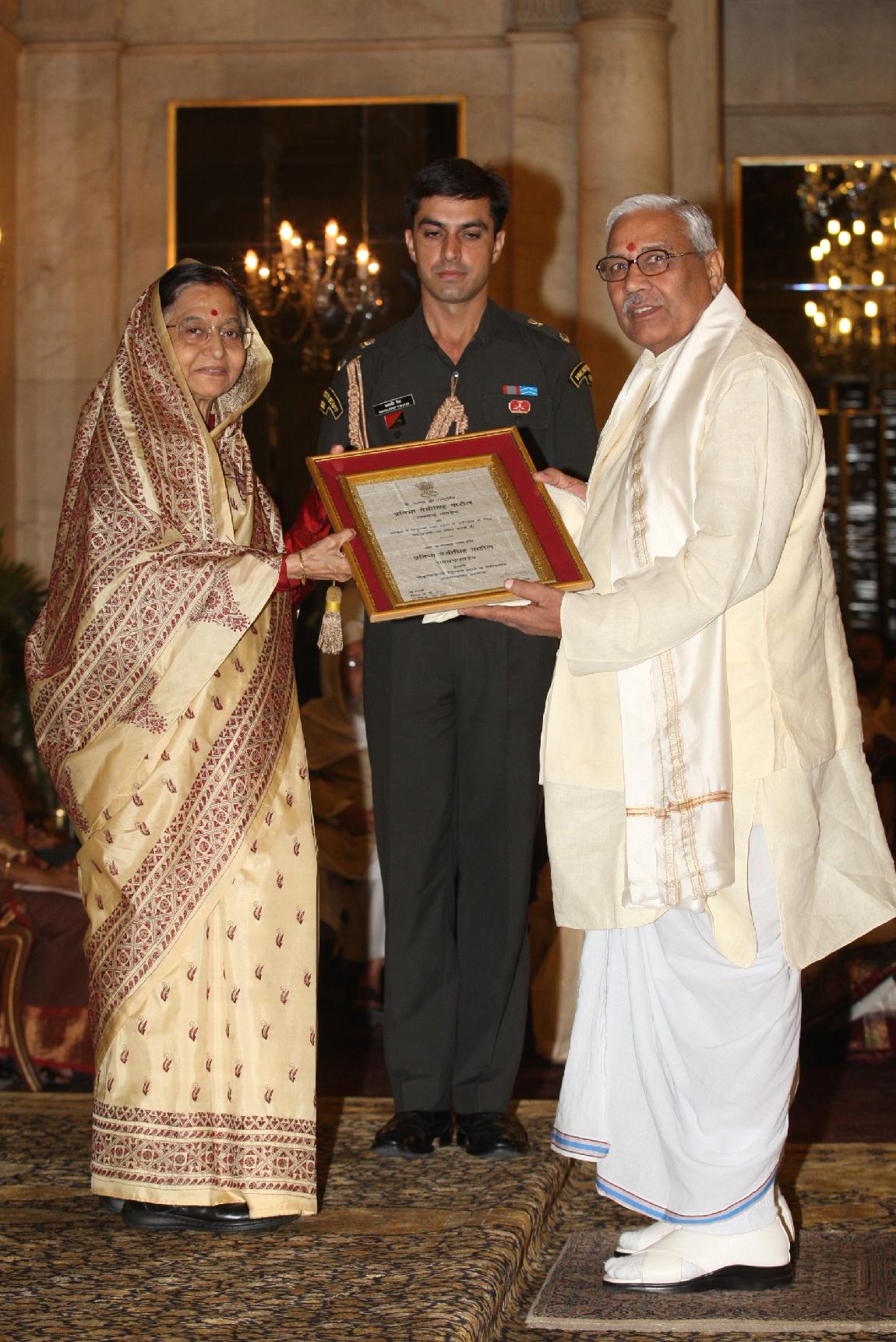 | Caption: | The President of India, Smt Pratibha Devisingh Patil presenting the Certificate for the Sanskrit Language for the year 2008 and for Sanskrit, Pali/Prakrit, Arabic, Persian & Classical Tamil scholars of the year 2009 at Rashtrapati Bhavan in New Delhi on May 06, 2011 |