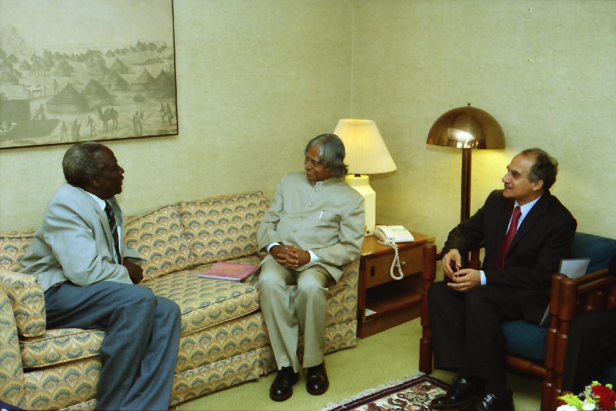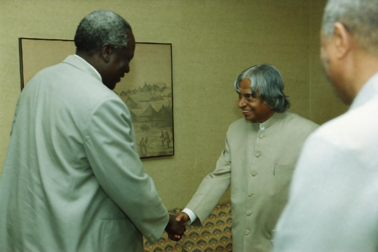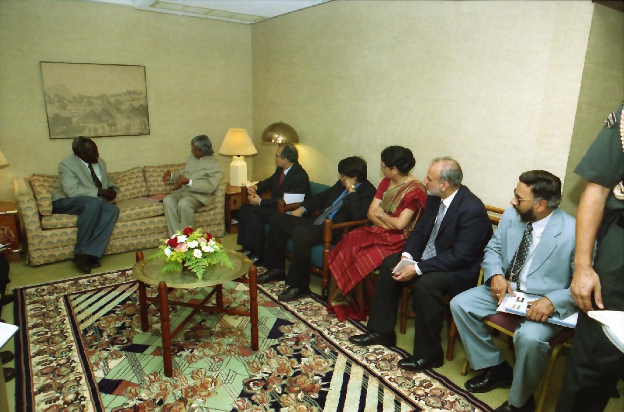 | Caption: | The Vice President of Sudan calling on the President of India, Dr A P J Abdul Kalam at the Hilton Hotel in Sudan on Oct 21, 2003 |