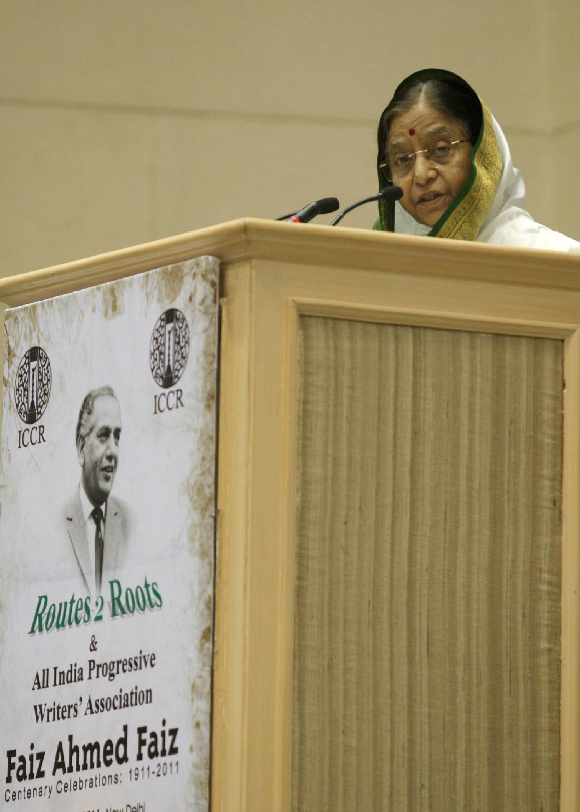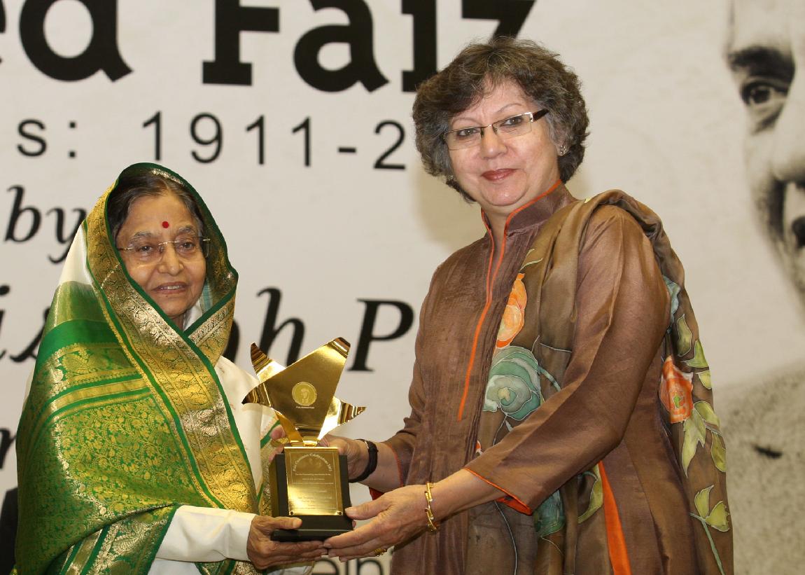 | Caption: | The President of India, Smt Pratibha Devisingh Patil receiving the First Copy of the CD on Faiz Ahmed Faiz from the Former Ambassador, HE Dr Abid Hussain at the inauguration of the Centenary Celebrations of Shri Faiz Ahmed Faiz in New Delhi on Feb 25, 2011 |
