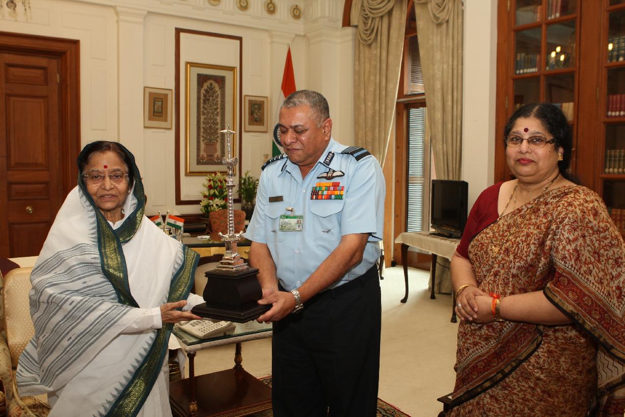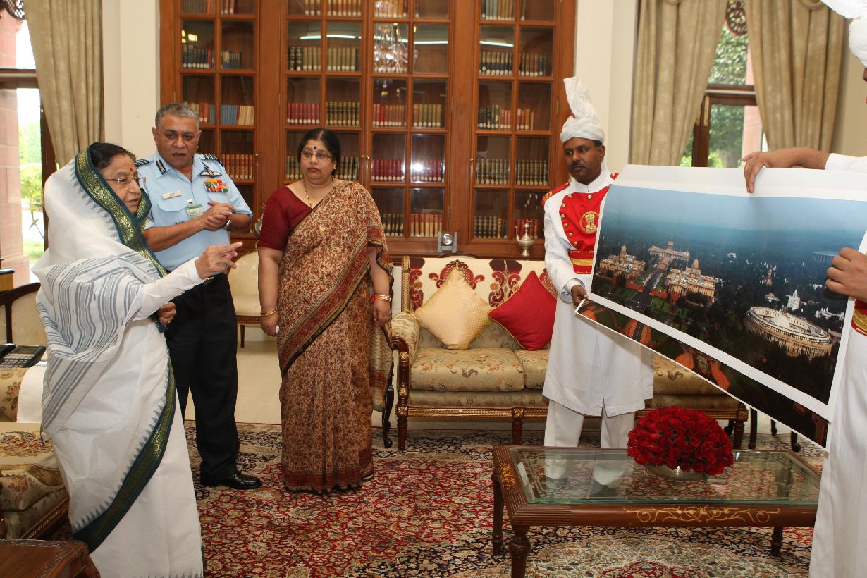 | Caption: | The President of India, Smt Pratibha Devisingh Patil at the Farewell Call by the Air Chief Marshal P V Naik at Rashtrapati Bhavan in New Delhi on July 21, 2011 |