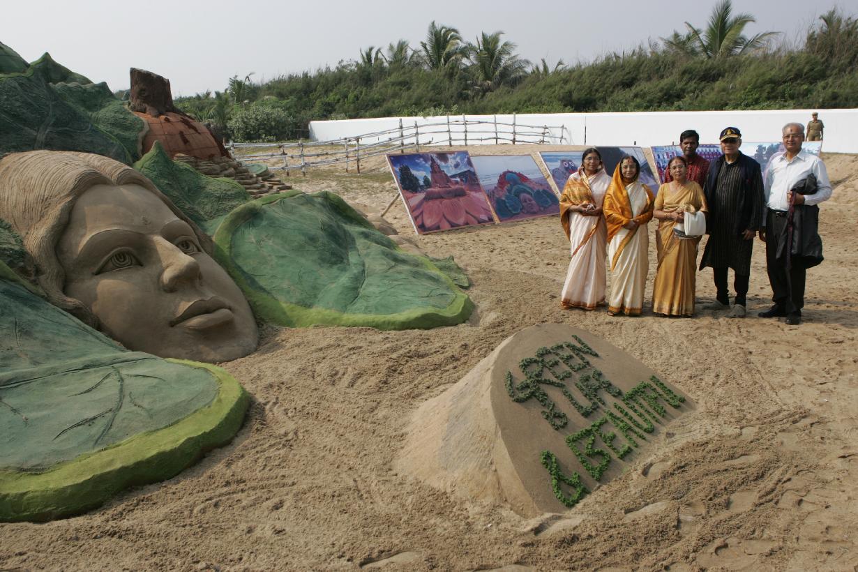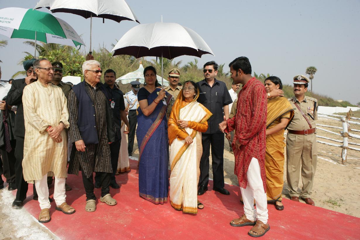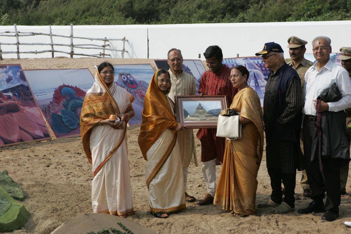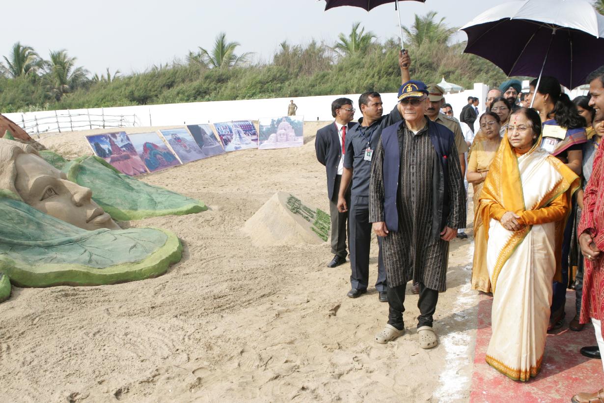 | Caption: | The President of India, Smt Pratibha Devisingh Patil having a look at Sand Sculpture by Shri Sudarshan Patnaik at Puri in Odisha on Dec 09, 2009 |