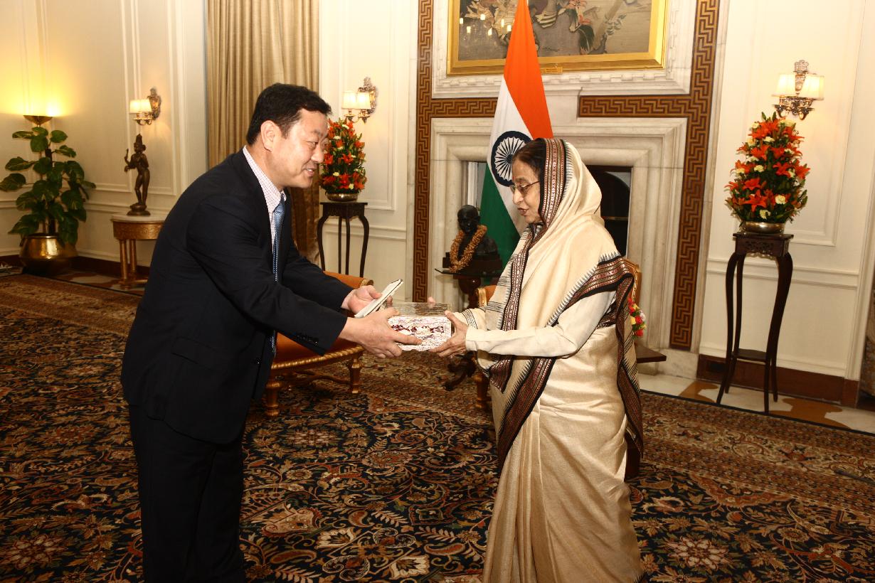 | Caption: | The President of India, Smt Pratibha Devisingh Patil interacting with the Korean Journalist at Rashtrapati Bhavan in New Delhi on July 22, 2011 |