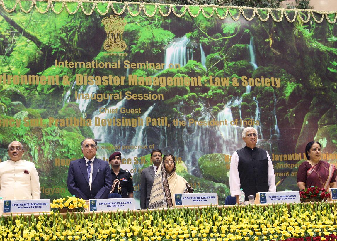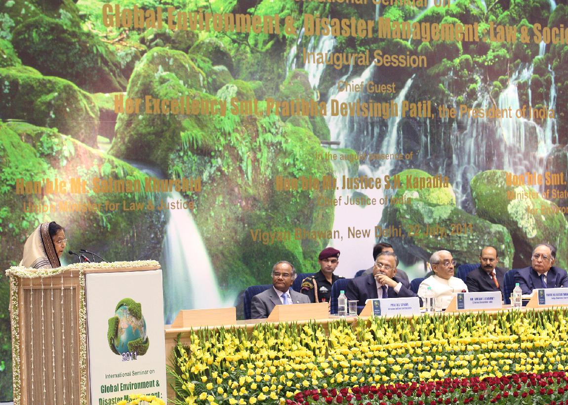 | Caption: | The President of India, Smt Pratibha Devisingh Patil Inaugurating the International Seminar on 'Global Environment and Disaster Management-Law and Society' at Vigyan Bhavan in New Delhi on July 22, 2011 |