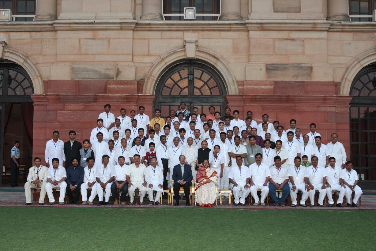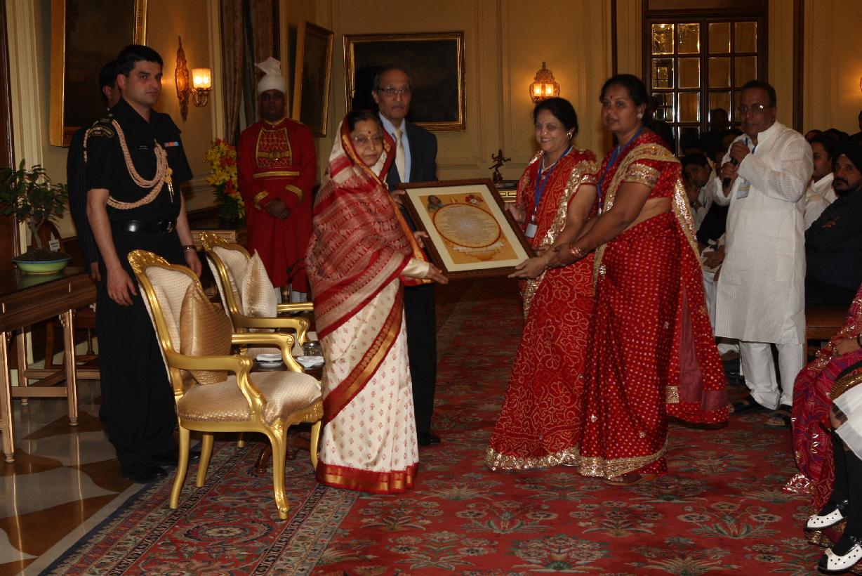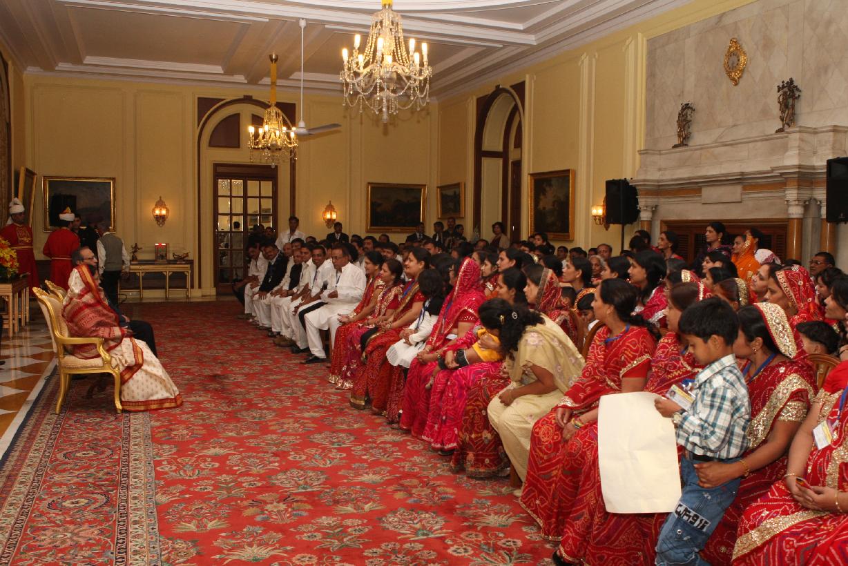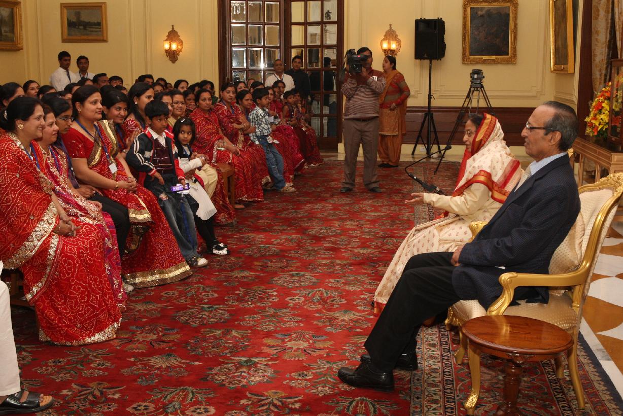 | Caption: | The President of India, Smt Pratibha Devisingh Patil interacting with the Members of Khandesh Gin Press Karkhandar at Rashtrapati Bhavan in New Delhi on Feb 28, 2011 |