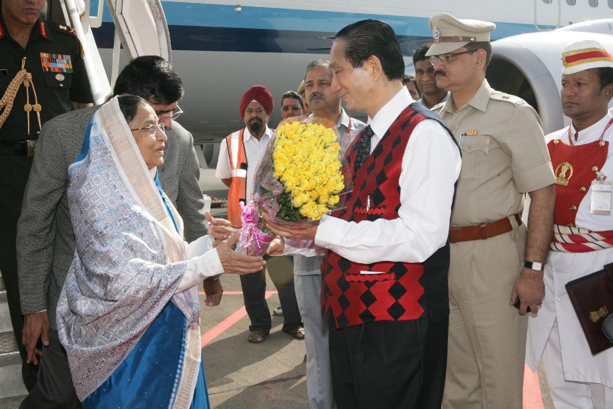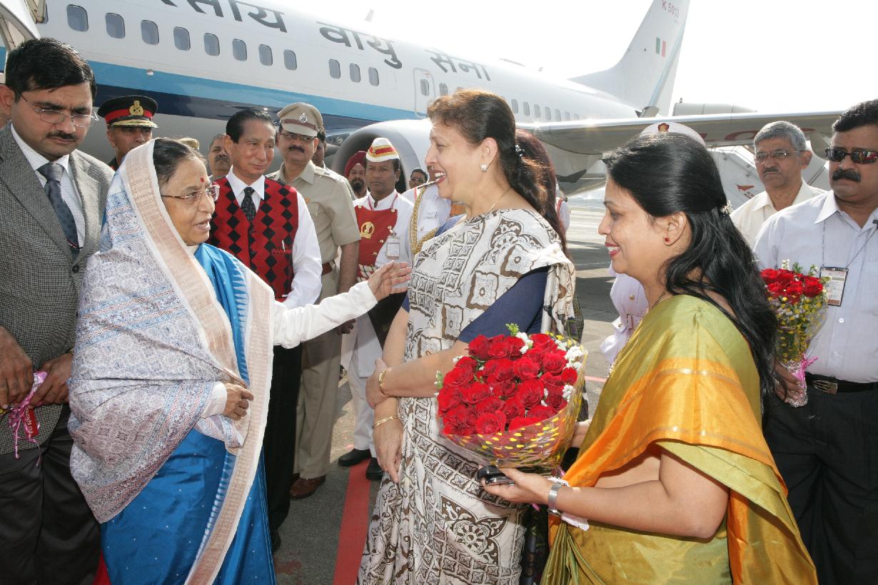 | Caption: | The President of India, Smt Pratibha Devisingh Patil being welcomed by the Governor of Maharashtra, S C Jamir at Chhatrapati Shivaji International Airport of Mumbai in Maharashtra on Dec 23, 2009 |