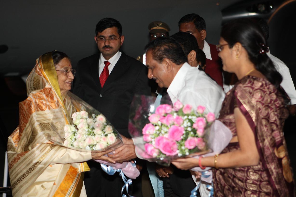 | Caption: | The President of India, Smt Pratibha Devisingh Patil during arrival at Nagpur Airport in Maharashtra on Feb 05, 2011 |