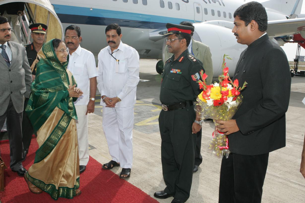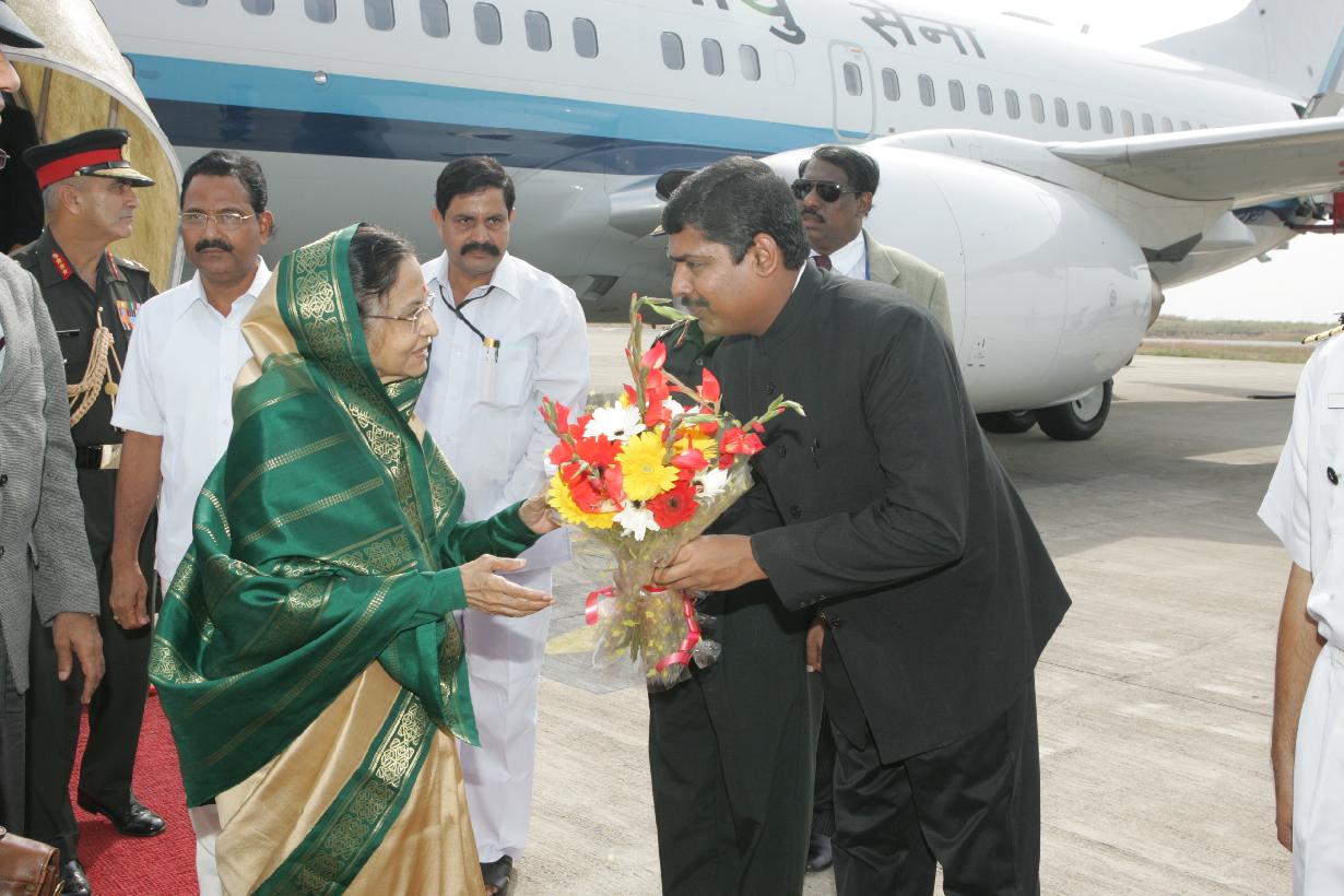 | Caption: | The President of India, Smt Pratibha Devisingh Patil during arrival at Mangalore Airport in Karnataka on Dec 24, 2009 |