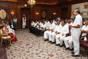 | Caption: | The President of India, Smt Pratibha Devisingh Patil interacting with Shri H D Deve Gowda and others at Rashtrapati Bhavan in New Delhi on Aug 05, 2010 |