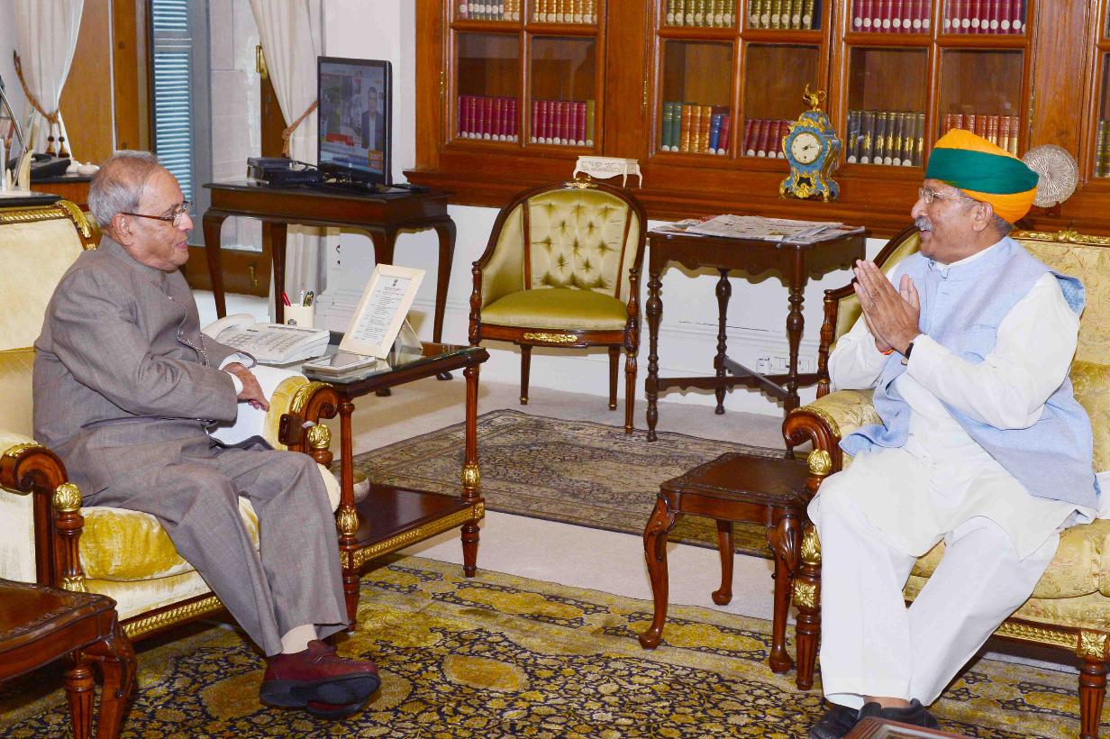| Caption: | The President of India, Shri Pranab Mukherjee meeting with Shri Arjun Ram Meghwal, Minister of State for Finance, at Rashtrapati Bhavan on July 08, 2016. |