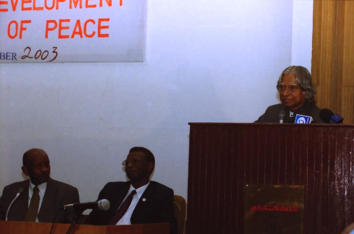 | Caption: | The President of India, Dr A P J Abdul Kalam at the Reception at University of Khartoum in Sudan on Oct 22, 2003 |