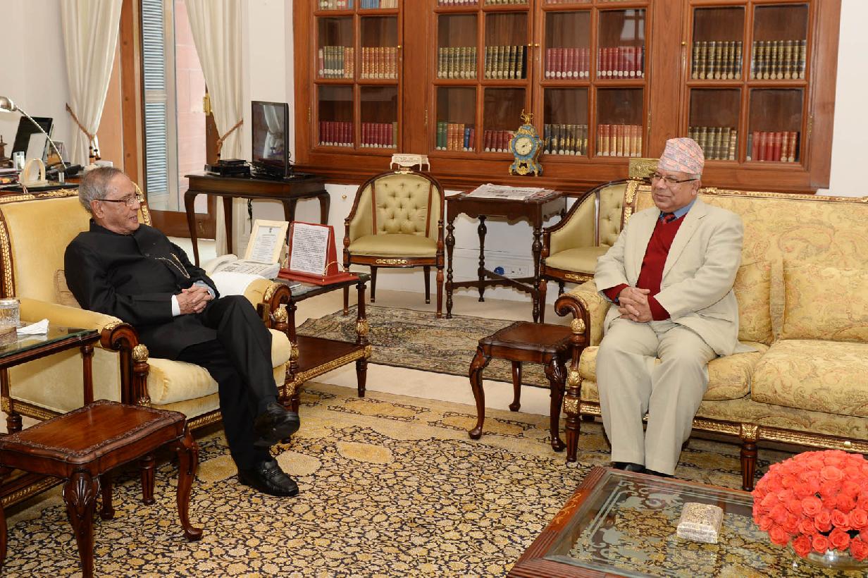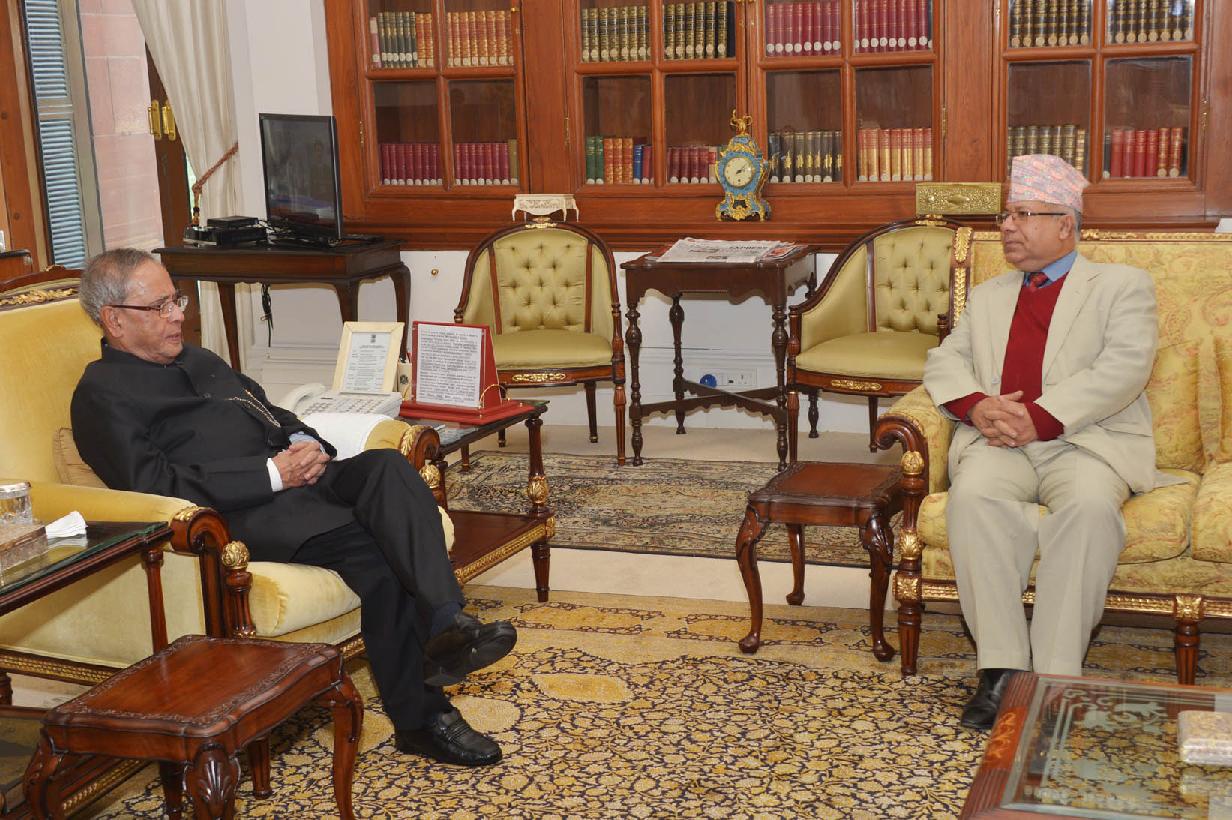 | Caption: | The Former Prime Minister of Nepal, Shri Madhav Nepal calling on the President of India, Shri Pranab Mukherjee at Rashtrapati Bhavan in New Delhi on Nov 19, 2014 |