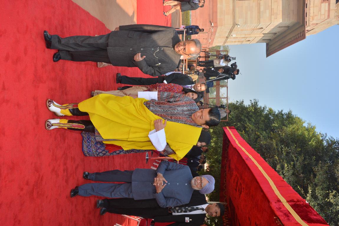 | Caption: | The President of India, Shri Pranab Mukherjee Ceremonial Reception of his Majesty Jigme Khesar Namgyel Wangchuck King of Bhutan & her Majesty the Queen Jetsun Pema Wangchuck on 25 Jan 2013 |