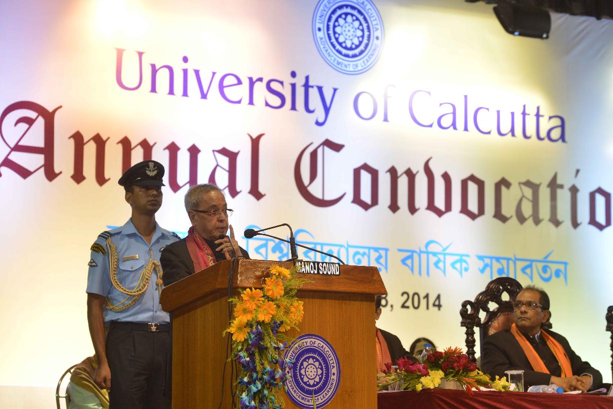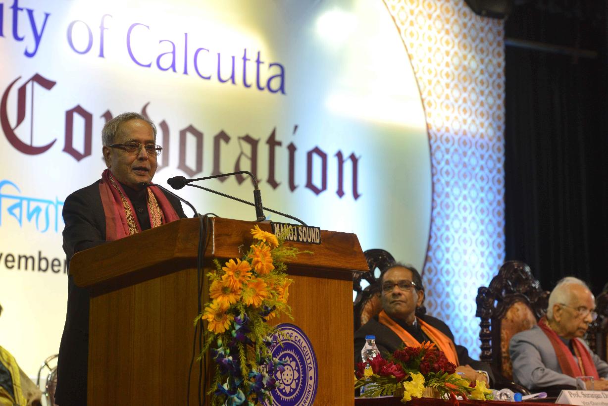 | Caption: | The President of India, Shri Pranab Mukherjee delivering his Convocation Address at the University of Calcutta (College Street) at Kolkata in West Bengal on Nov 28, 2014 |