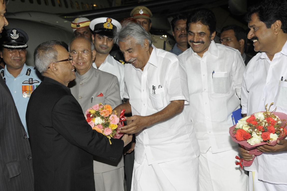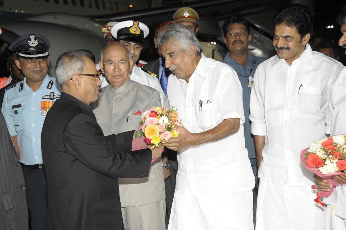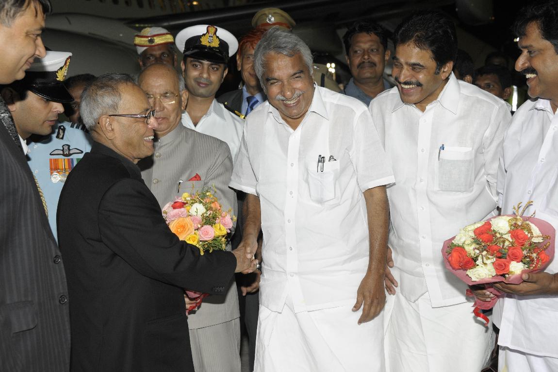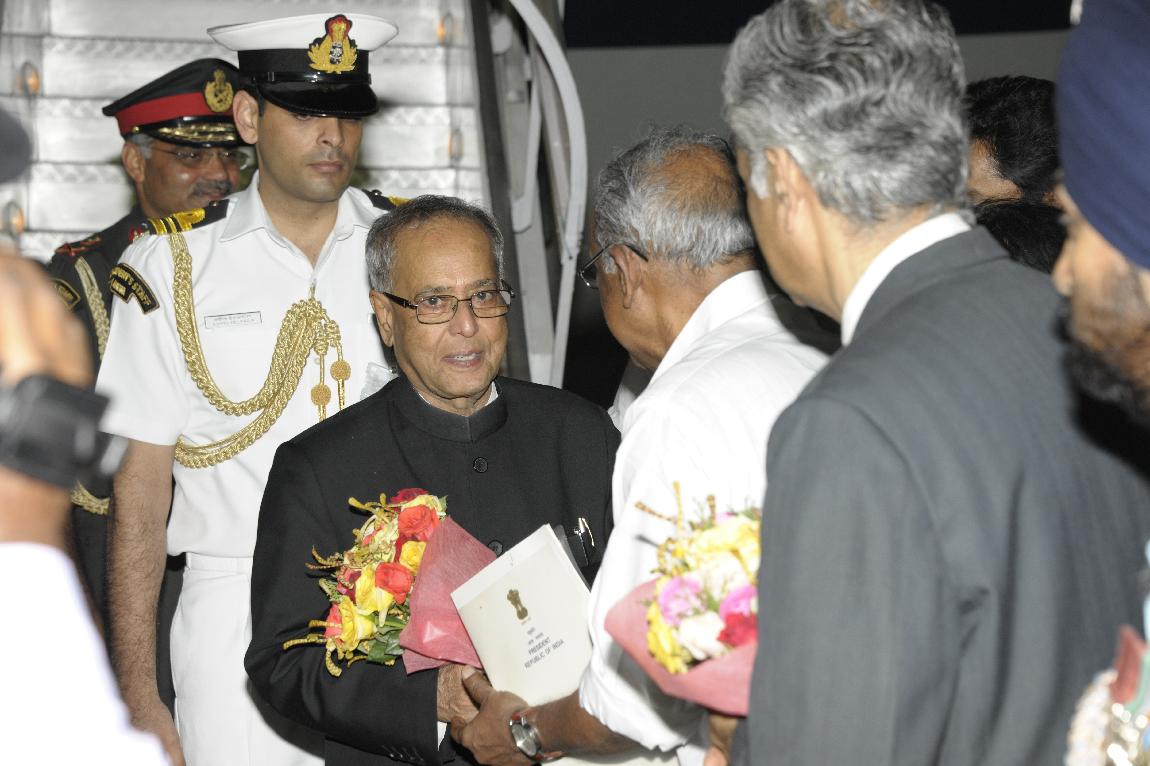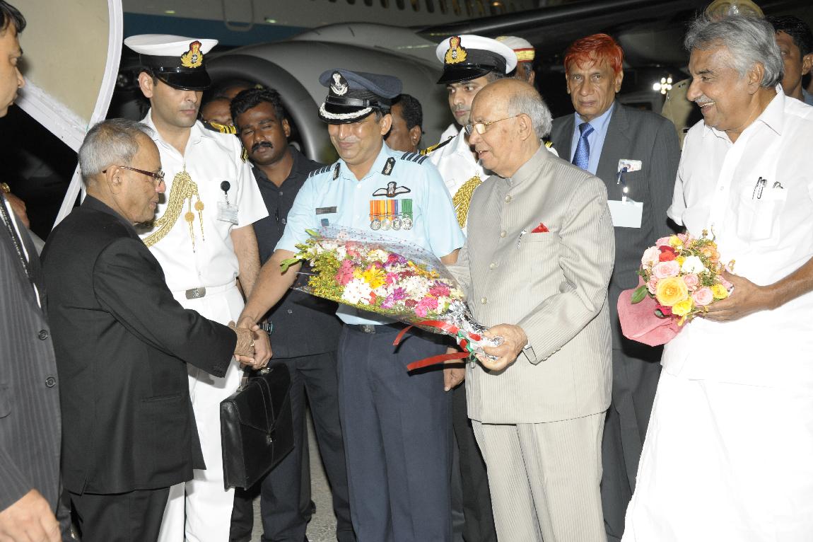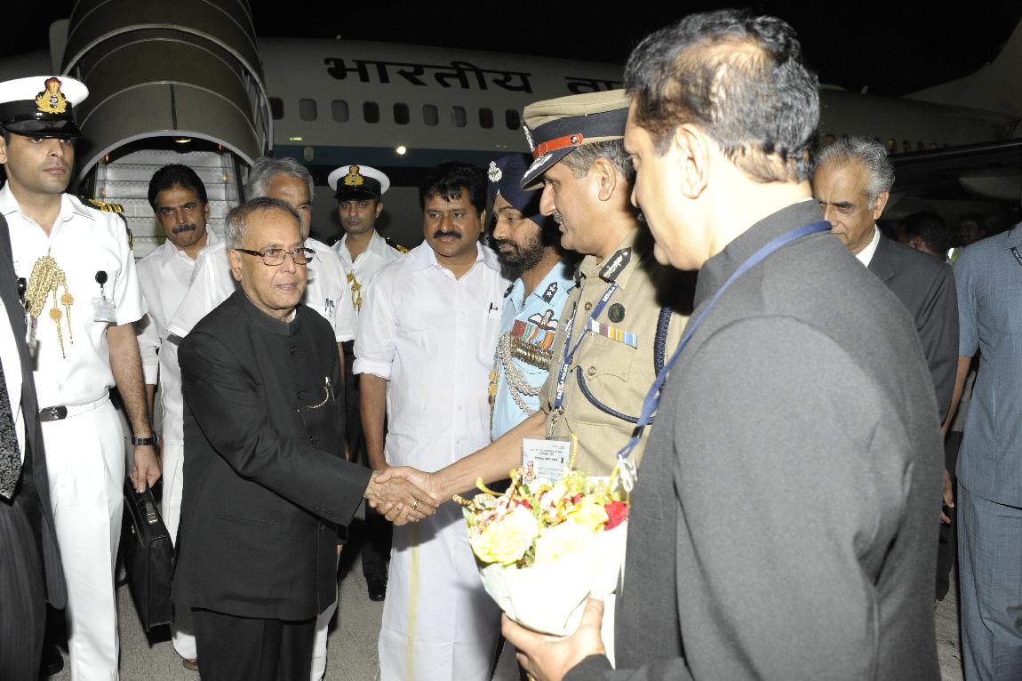 The President of India, Shri Pranab Mukherjee Arriving at Thiruvananthapuram on October 29, 2012