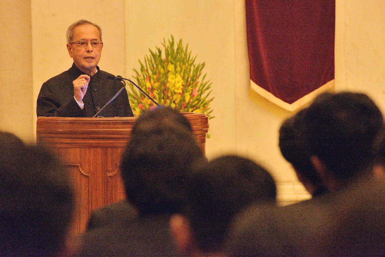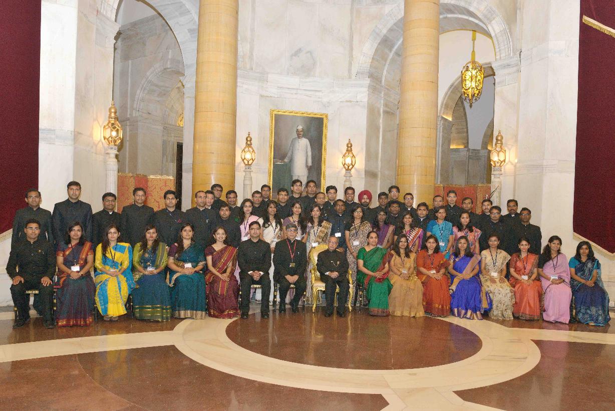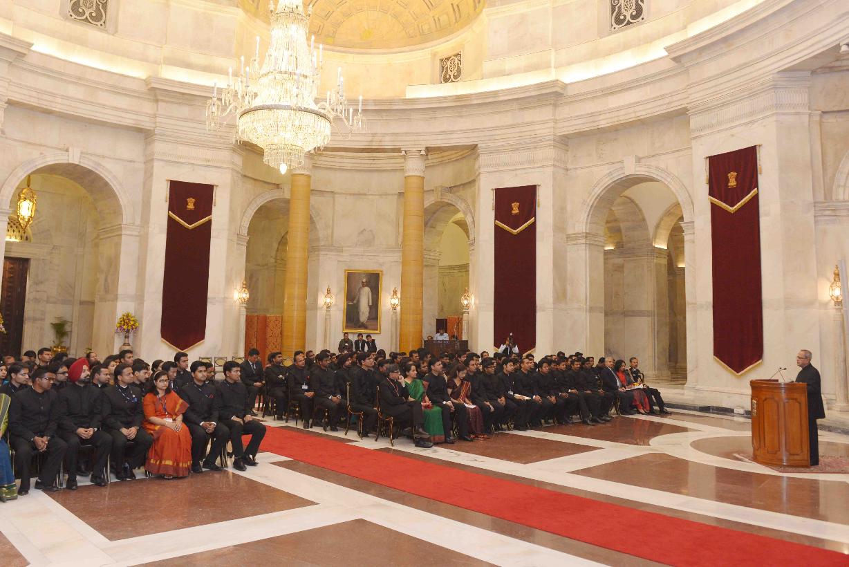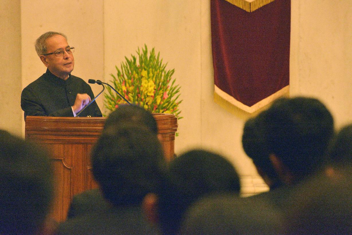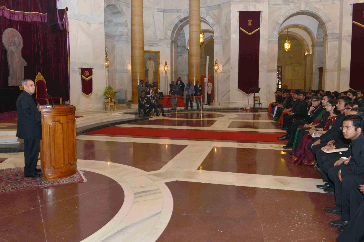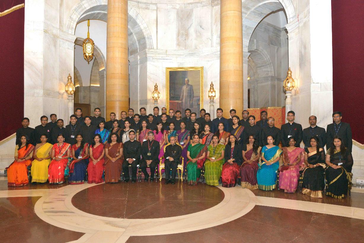 | Caption: | The President of India, Shri Pranab Mukherjee, during meeting with Officer Trainees, attending IAS Professional Course Phase-I for 2014 Batch at Lal Bahadur Shastri National Academy on Administration (LBSNAA), Mussoorie, at Rashtrapati Bhavan, in New Delhi on February 20, 2015. |