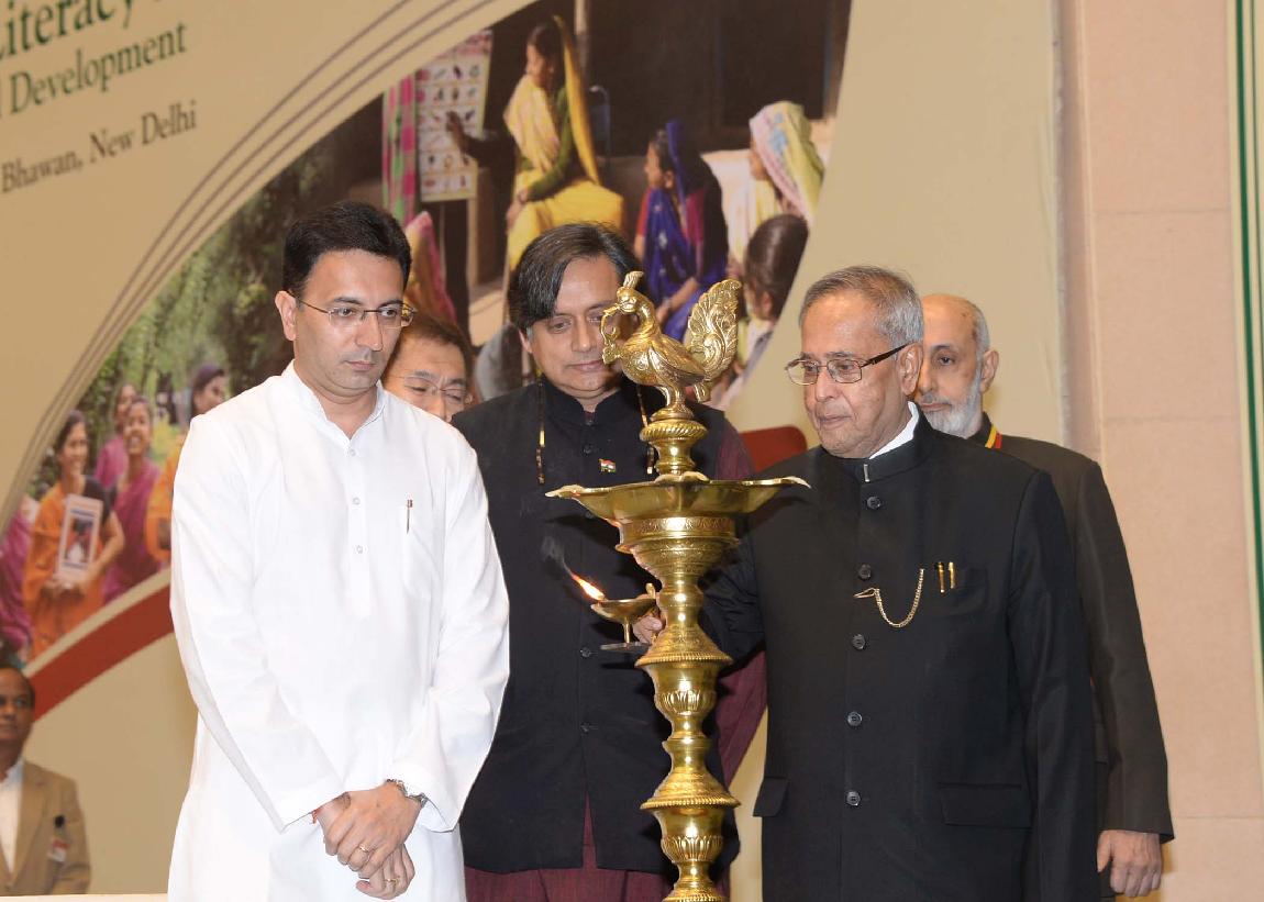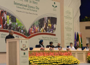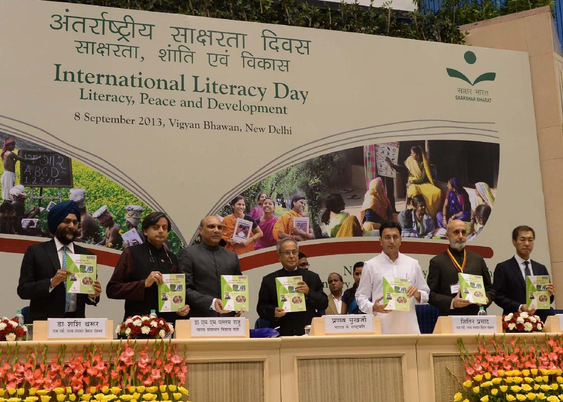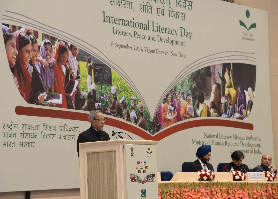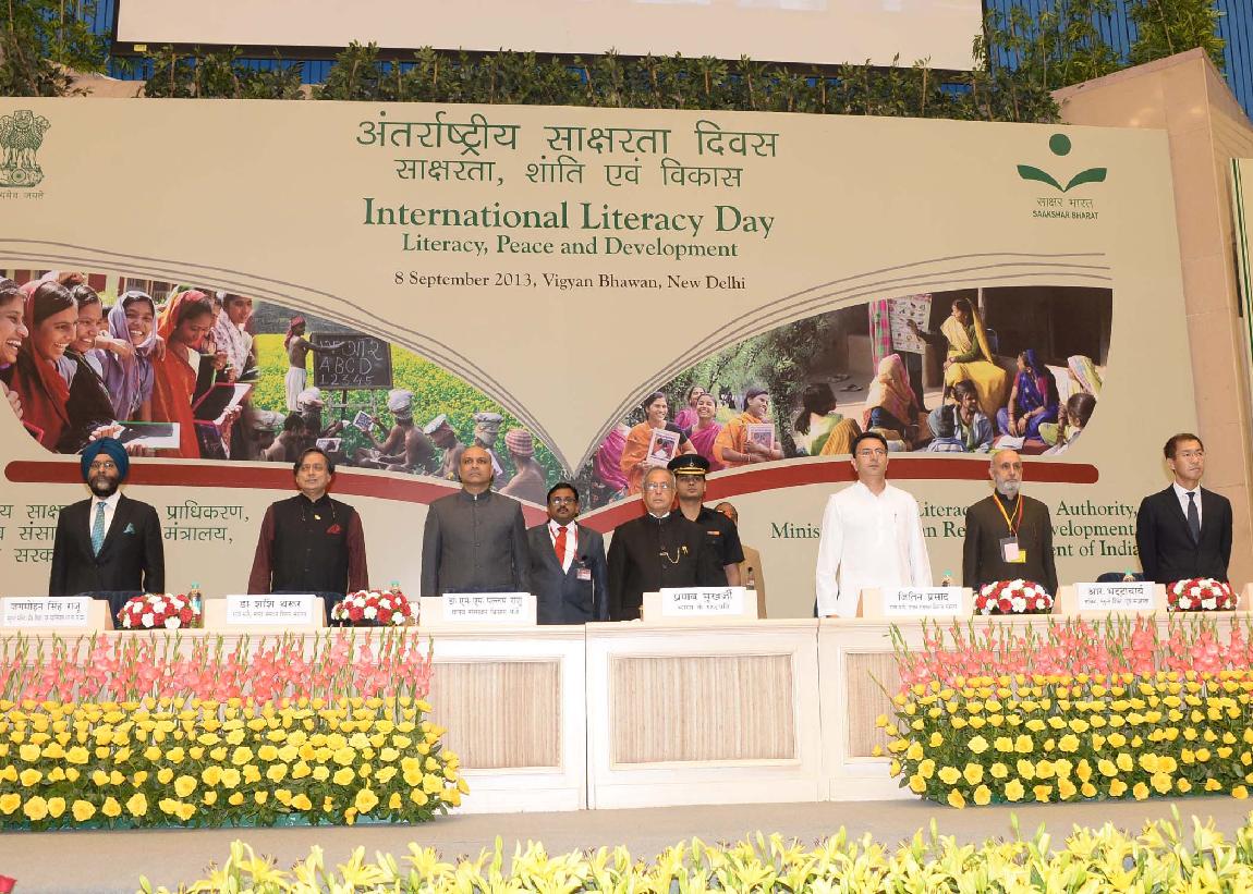 | Caption: | The President of India, Shri Pranab Mukherjee at the International Literacy Day Function being Organized by Ministry of Human Resource Development at Vigyan Bhavan in New Delhi on Sep 08, 2013 |