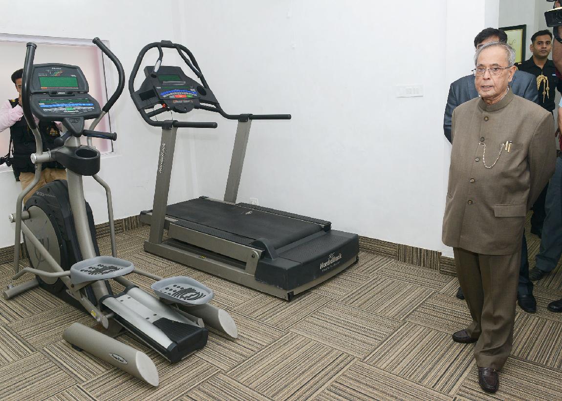 | Caption: | The President of India, Shri Pranab Mukherjee inaugurating the Recreation Club Fitness Centre at Schedule B, President s Estate in New Delhi on July 24, 2014 |
