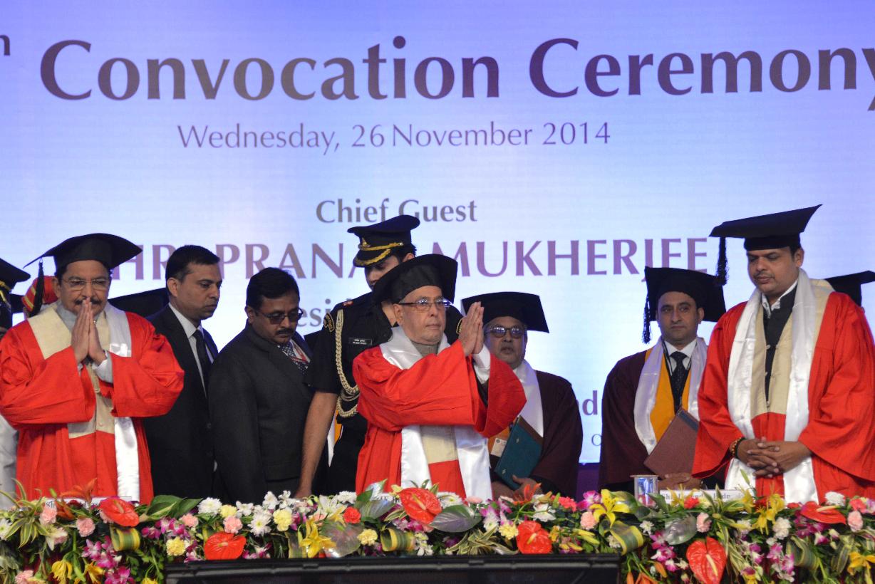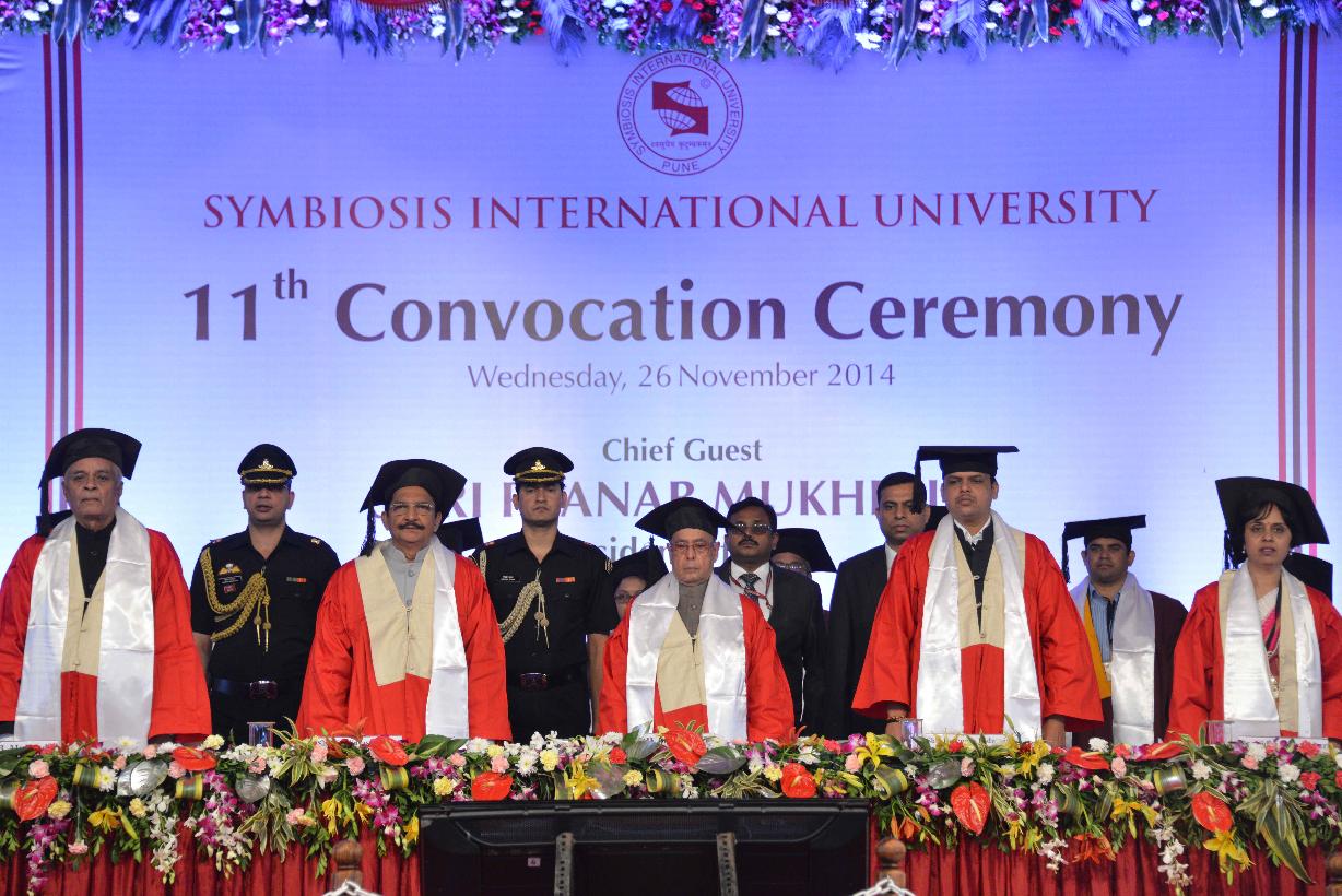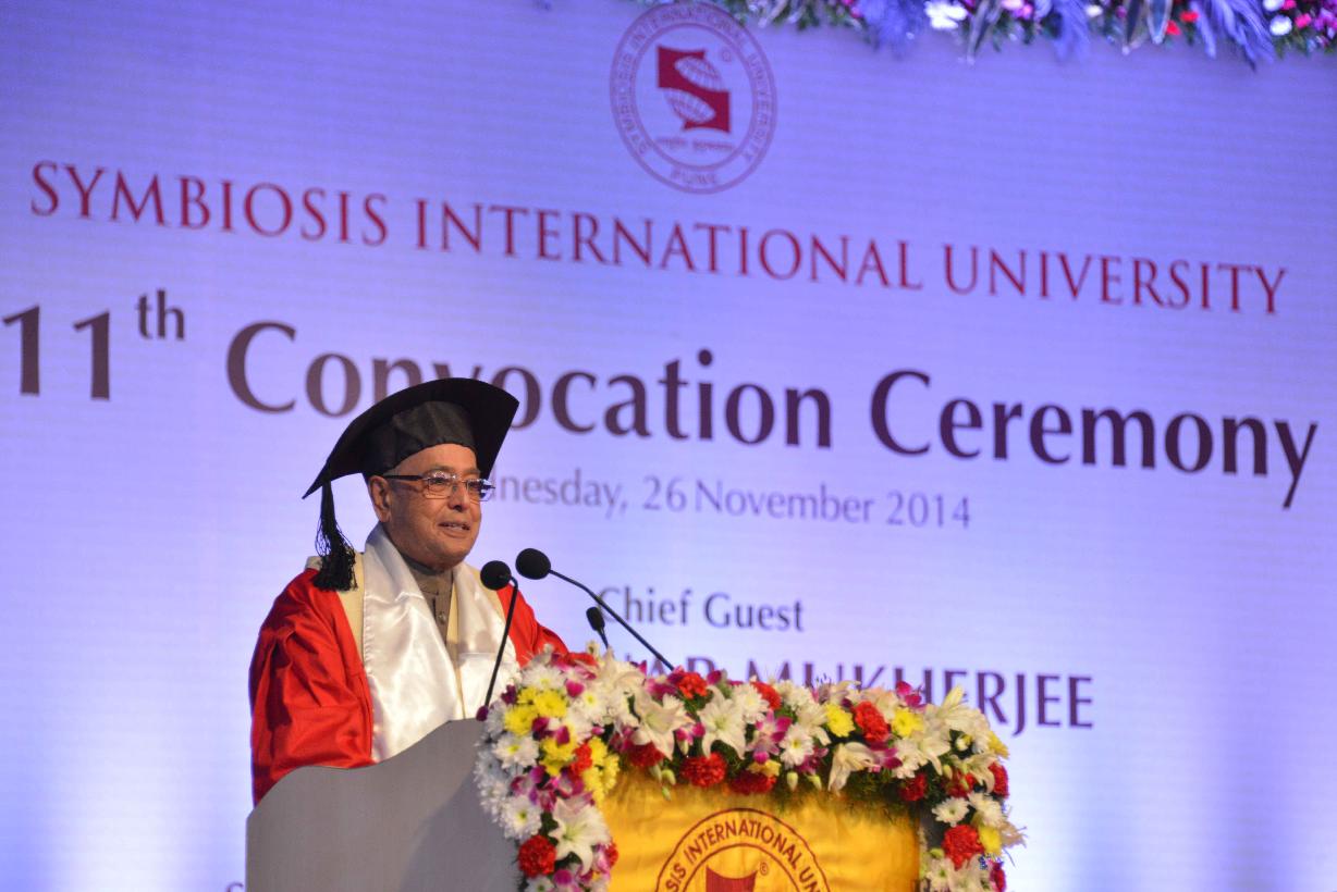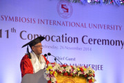 | Caption: | The President of India, Shri Pranab Mukherjee during the 11th Convocation of Symbiosis International University (SIU) at Pune in Maharashtra on Nov 26, 2014 |
