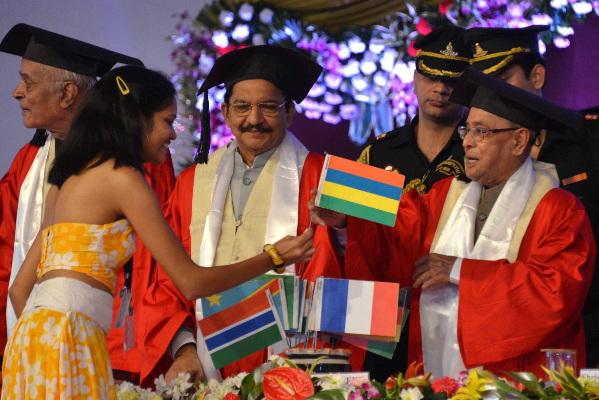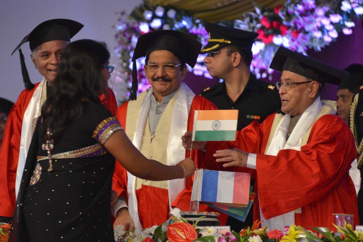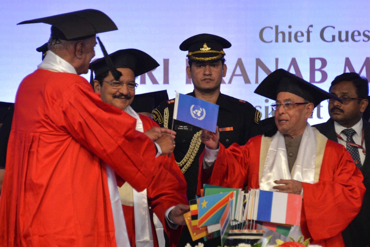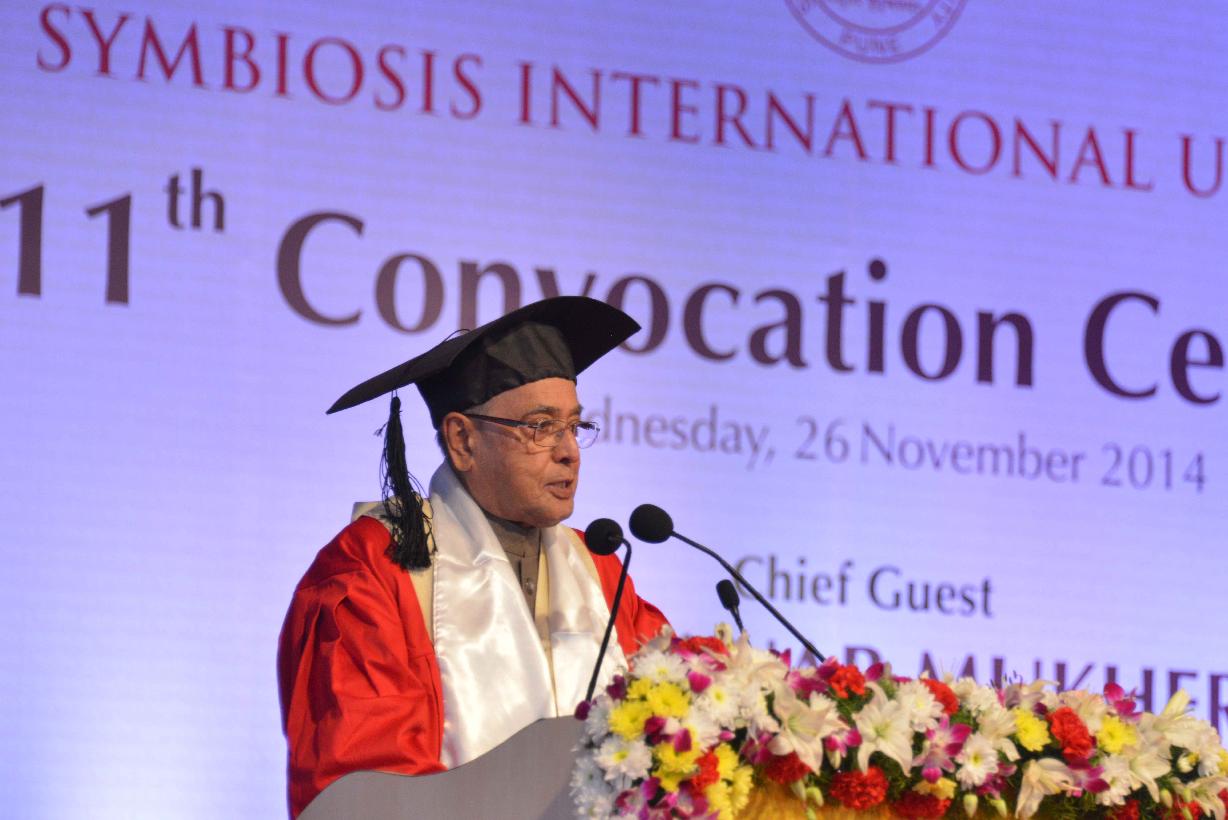 | Caption: | The President of India, Shri Pranab Mukherjee during the 11th Convocation of Symbiosis International University (SIU) at Pune in Maharashtra on Nov 26, 2014 |