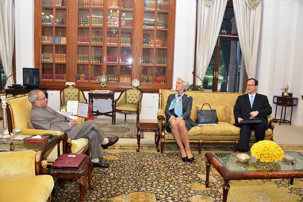 | Caption: | The Managing Director of the International Monetary Fund (IMF), Ms. Christine Lagarde calling on the President of India, Shri Pranab Mukherjee, at Rashtrapati Bhavan, in New Delhi on March 16, 2015. |