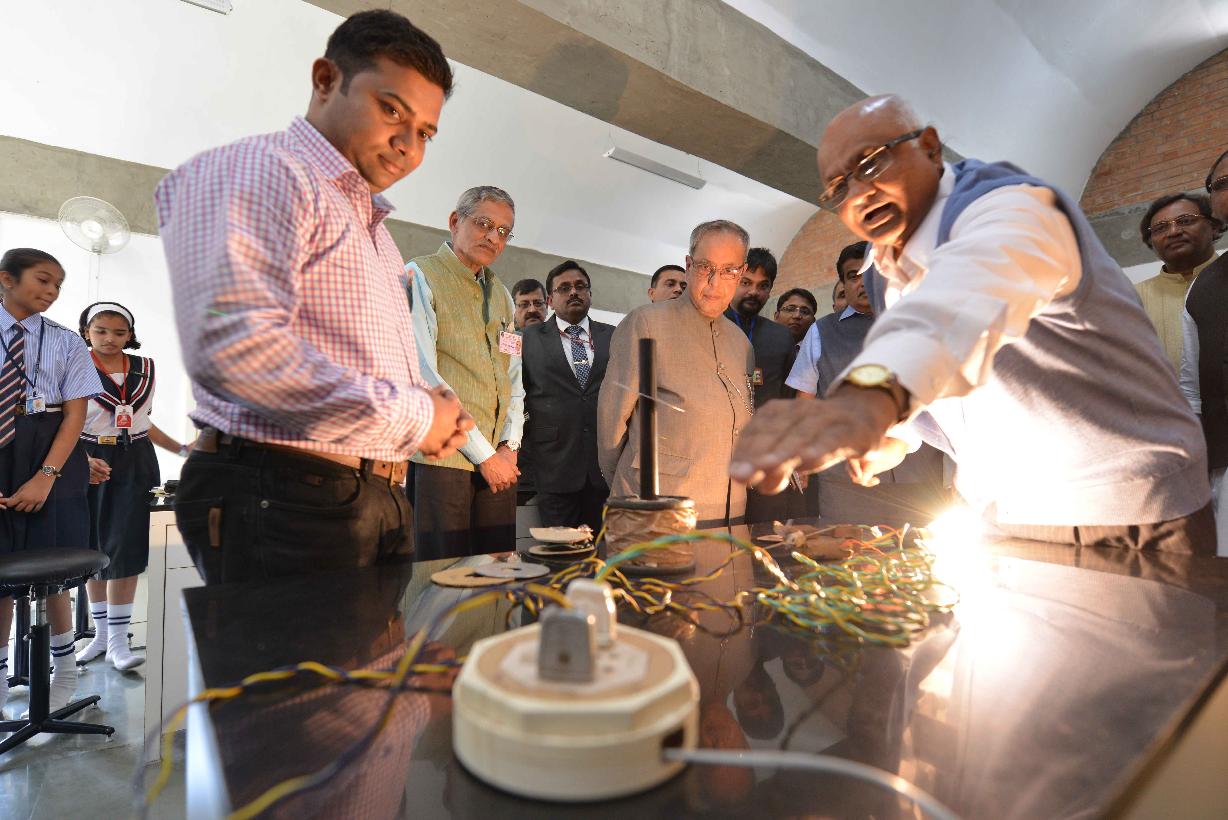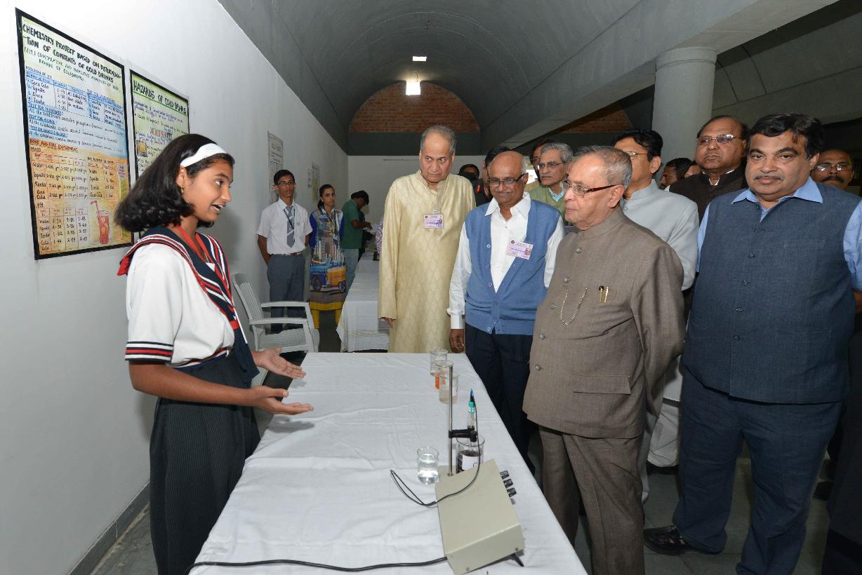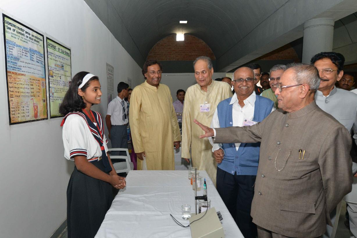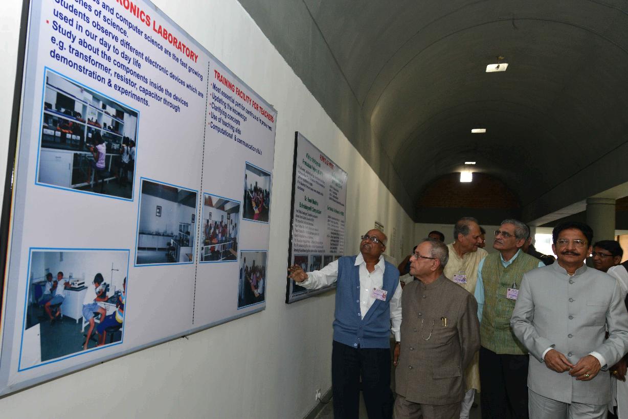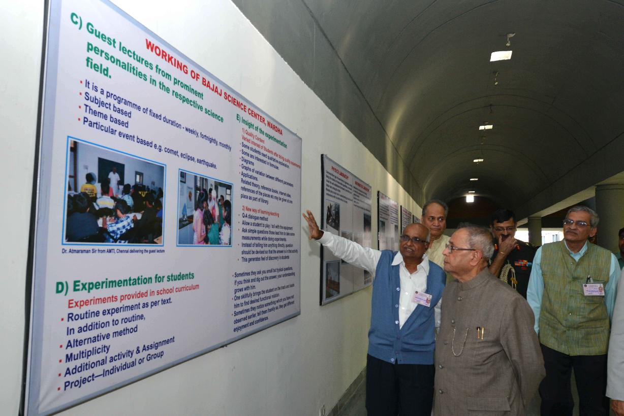 | Caption: | The President of India, Shri Pranab Mukherjee going around the Innovation Exhibition at Bajaj Science Centre at Wardha in Maharashtra on Nov 26, 2014 |