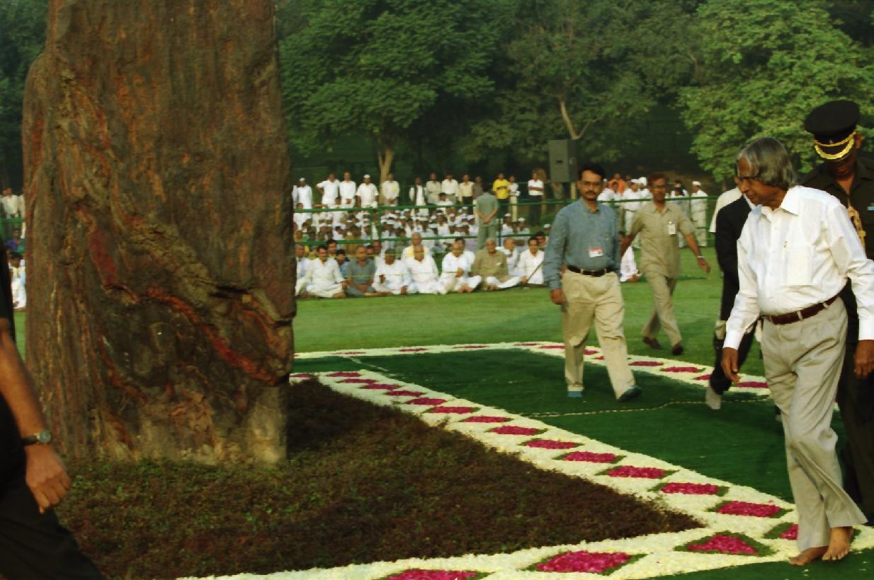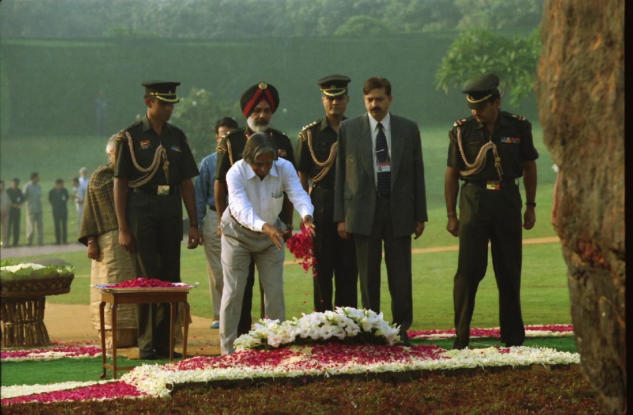 | Caption: | The President of India, Dr A P J Abdul Kalam paying homage at the Samadhi of the Prime Minister of India, Late Smt Indira Gandhi to Commemorate her Death Anniversary at Shakti Sthal in New Delhi on Oct 31, 2002 |