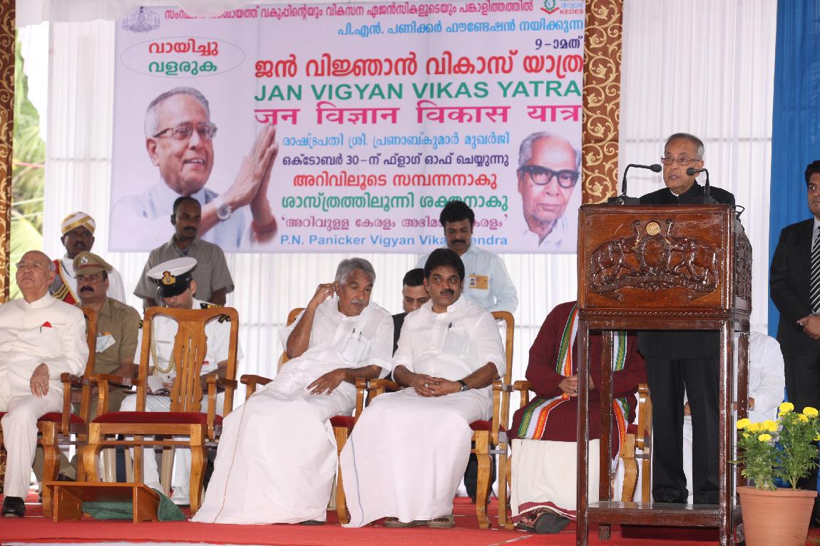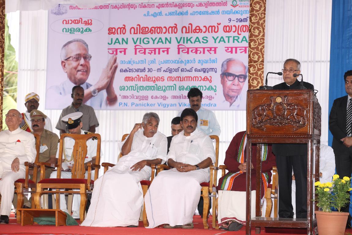 | Caption: | The President of India, Shri Pranab Mukherjee Attending Vigyan Yatra Organised by GN Panicker Vikas Kendra Flag Off on October 30, 2012 |