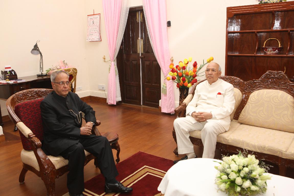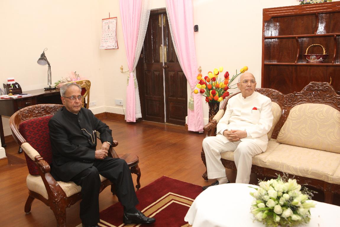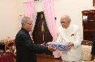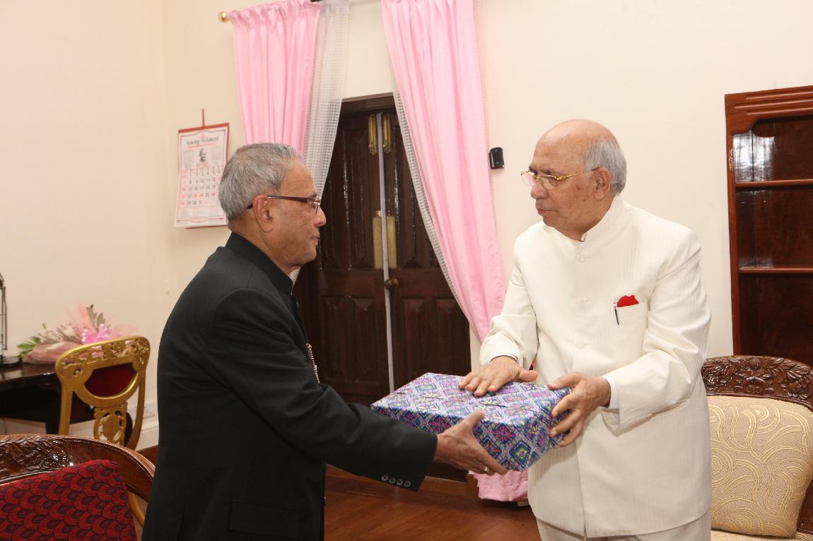 | Caption: | The President of India, Shri Pranab Mukherjee Exchanging Gifts with The Governor of Kerala on October 30, 2012 |