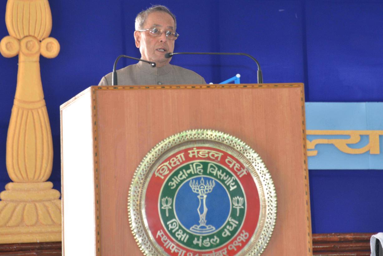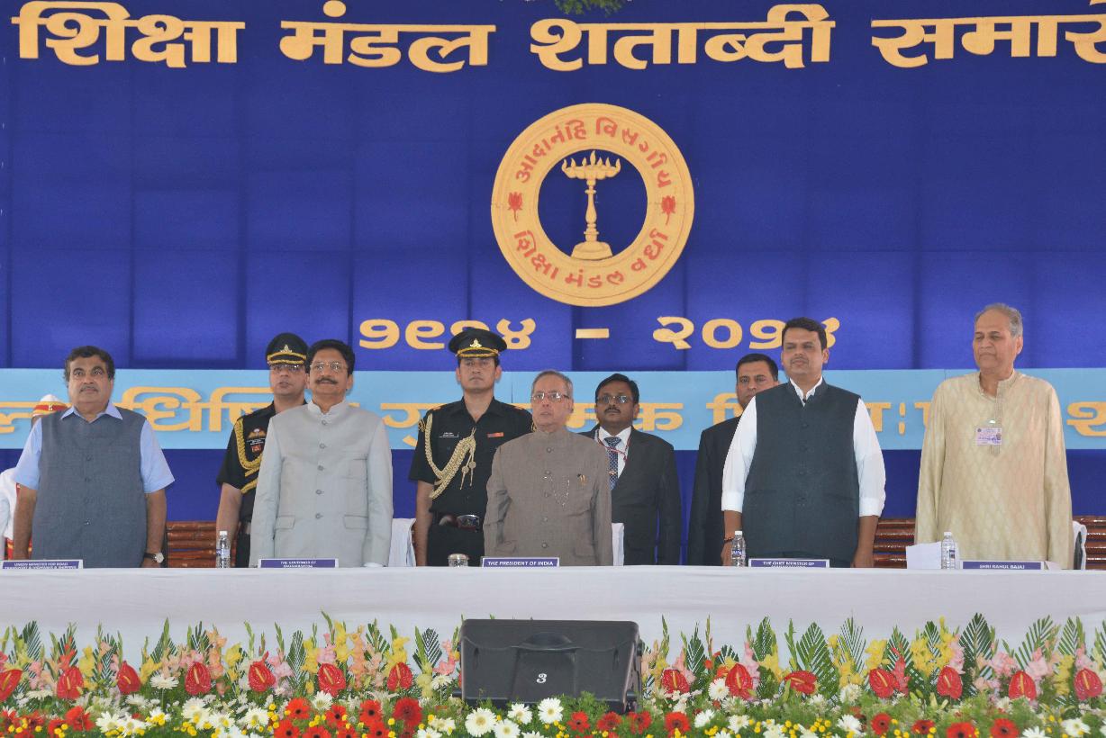 | Caption: | The President of India, Shri Pranab Mukherjee during the Centenary Celebrations of Shiksha Mandal at Wardha in Maharashtra on Nov 26, 2014 |